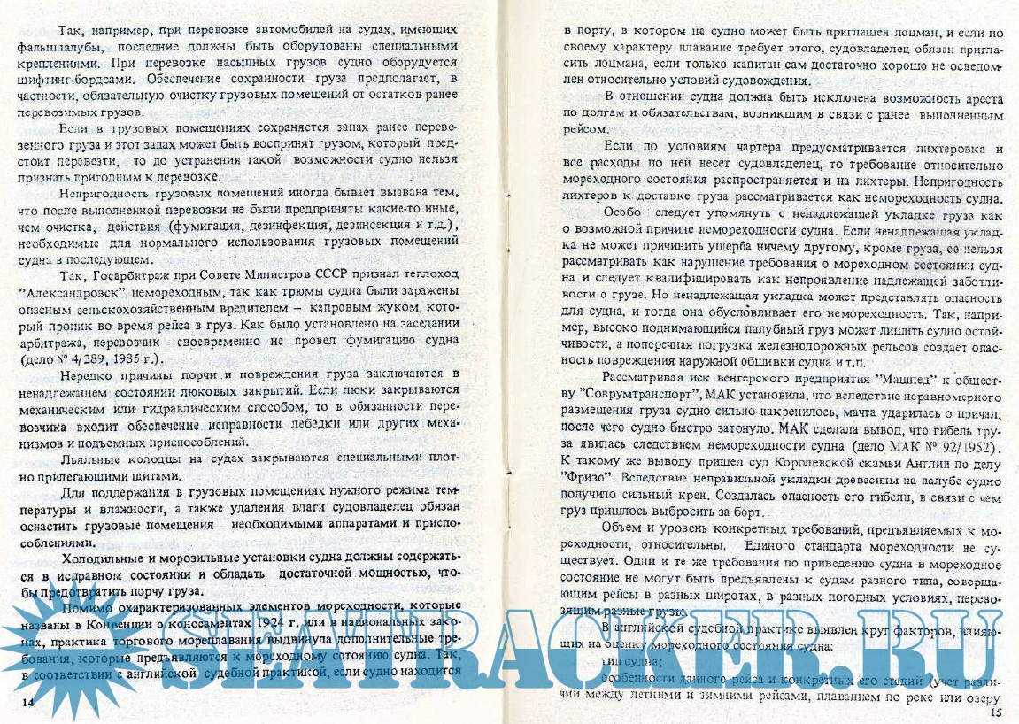Описание: Калпин А.Г. Условия договоров фрахтования о судне и портах погрузки-выгрузки: Тексты лекций - М.: "Мортехинформреклама", 1989 - 43 с.