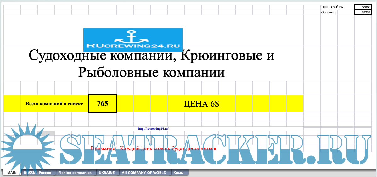 Год выпуска: 2020 Язык: Русский, Английский Автор: rucrewing24 Жанр: Каталог Формат: XLS Качество: Изначально компьютерное (eBook) Количество страниц: 5 Описание: Всего компаний в списке: 765 Russia, Fishing companies, Ukraine, All company of world, Крым