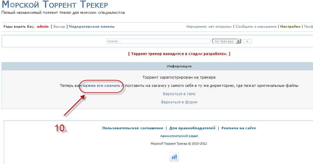 7. Now you need to download new torrent file of your release (it was modified by tracker). Press blue link at appeared window for that, and save modified torrent file.