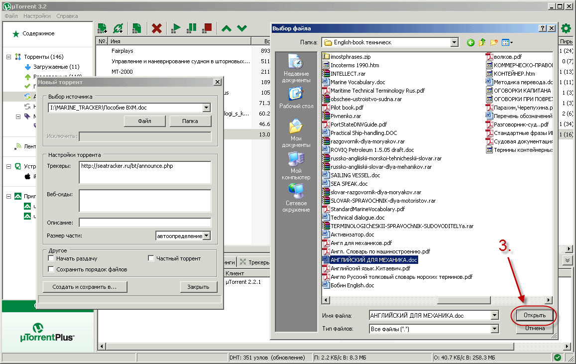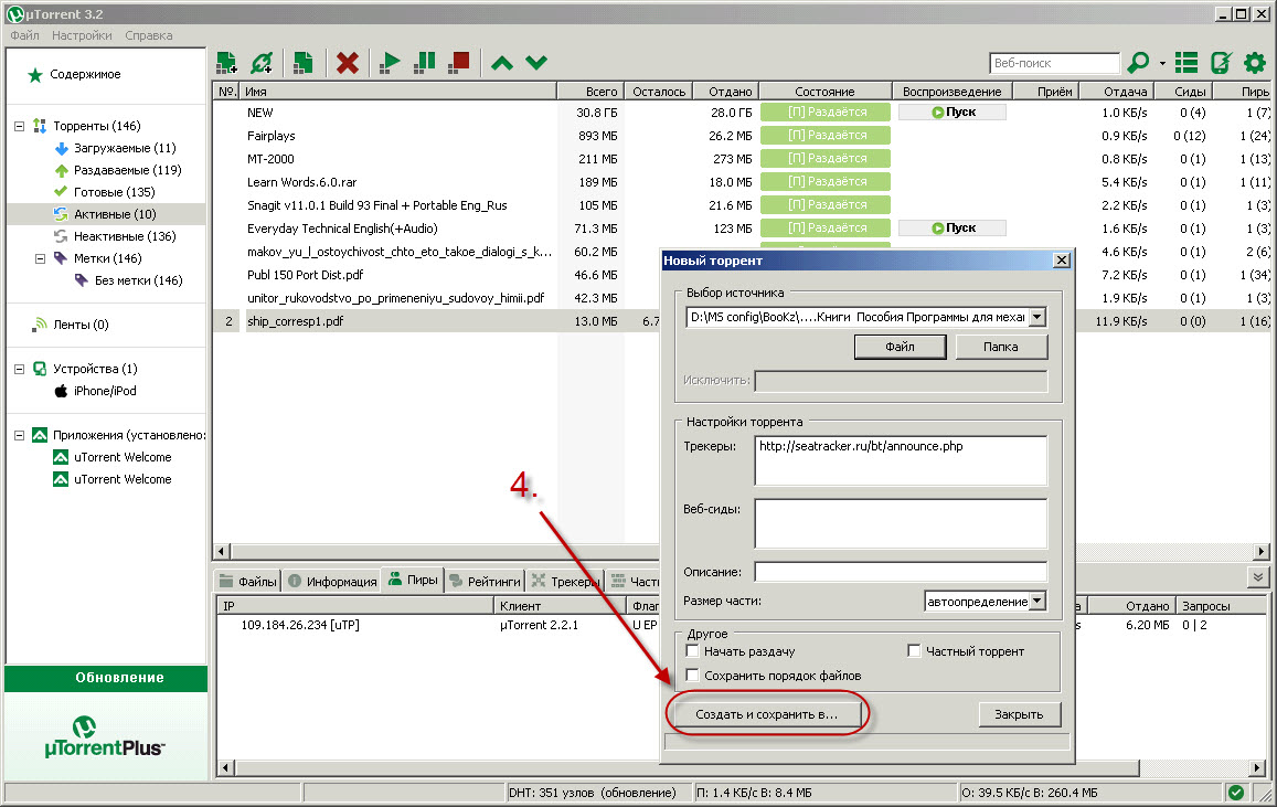 Создание торрент файла через программу uTorrent