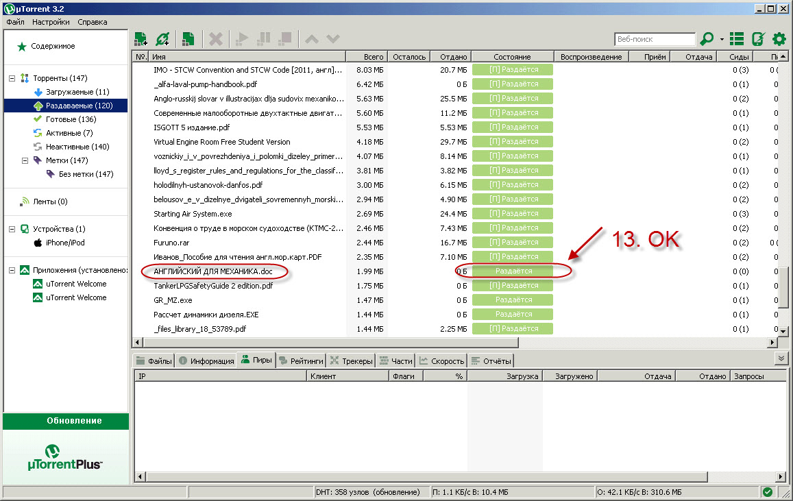 Шаг 6. Если всё сделали правильно, то после того, как хеш проверится, ваша раздача станет активна.