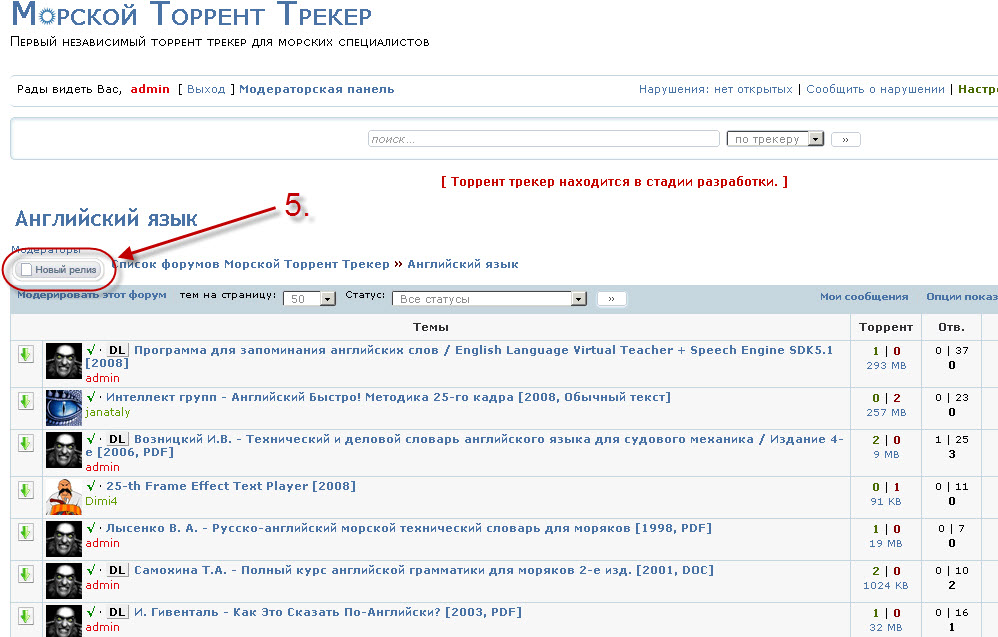 New release button you can find exactly in those section of torrent tracker, where you would like to release.