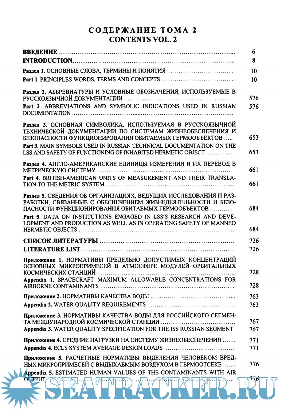 Описание: Первый том содержит: англо-русский словарь основных слов, терминов и понятий; аббревиатуру и основную символику, принятую в англоязычной технической документации по системам жизнеобеспечения и безопасности. Второй том включает: русско-английский словарь, аббревиатуру и основную символику, используемую в российской технической документации по средствам жизнеобеспечения и безопасности; англо-американские единицы измерения с переводом их в метрическую систему; сведения об организациях, принимающих участие в разработке регенеративных систем жизнеобеспечения всех типов и областей применения; нормативные характеристики по предельно допустимым концентрациям вредных микропримесей в воздухе обитаемых объектов, питьевой и сангигиенической воде; средние величины нагрузок на системы жизнеобеспечения и расчетные нормативы выделения человеком продуктов жизнедеятельности. Словарь-справочник предназначен для специалистов инженерно-технического, медикобиологического и экологического профилей, участвующих в процессах разработки и эксплуатации систем жизнеобесnечения человека в области авиационной и космической техники, подводного флота, подземных и наземных гермаубежищ и т.д., может быть полезен для инженерно-технических и биомедицинских работников, специализирующихся в разработке экологических систем и средств обитания человека на Земле.