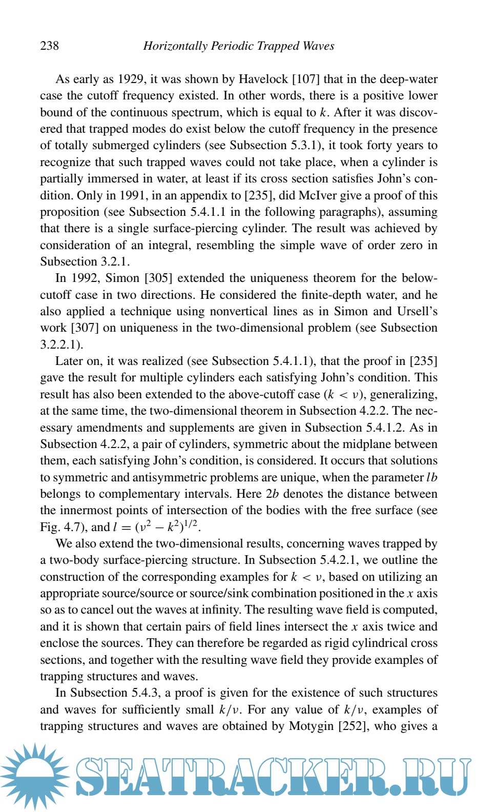 Year: 2002 Language: english Author: Kuznetsov N., Maz'ya V., Vainberg B. Genre: Handbook Publisher: Cambridge University Press Edition: 1st ISBN: 0521808537 Format: PDF Quality: Scanned pages Pages count: 533 Description: This book gives a self-contained and up-to-date account of mathematical results in the linear theory of water waves. The study of waves has many applications, including the prediction of behavior of floating bodies (ships, submarines, tension-leg platforms etc.), the calculation of wave-making resistance in naval architecture, and the description of wave patterns over bottom topography in geophysical hydrodynamics. The first section deals with time-harmonic waves. Three linear boundary value problems serve as the approximate mathematical models for these types of water waves. The next section uses a plethora of mathematical techniques in the investigation of these three problems. The techniques used in the book include integral equations based on Green's functions, various inequalities between the kinetic and potential energy and integral identities which are indispensable for proving the uniqueness theorems. The so-called inverse procedure is applied to constructing examples of non-uniqueness, usually referred to as 'trapped nodes.'