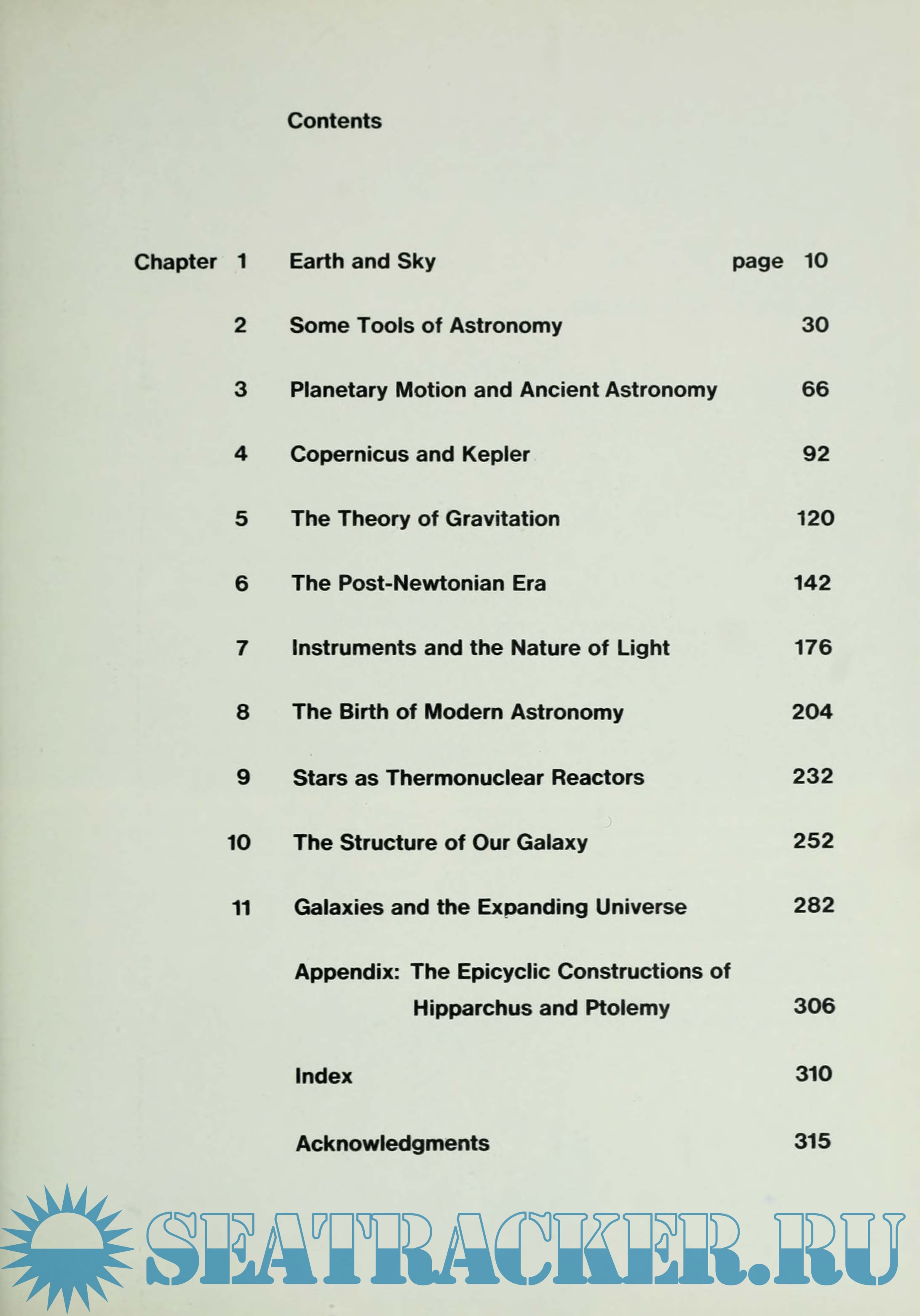 Description: The astronomer Fred Hoyle starts this book with the ancients and gives a feel for how people first started to understand the regularities of the heavens. It starts with sundials and standing stones and simple observational gear for measuring the declination and right ascension of stars, though Hoyle avoids cluttering things with technical vocabulary. The story continues with the triumph of the geocentric system and its challenges. Eventually, the heliocentric system takes over and the age of optical instruments leads to new data, new models and new understanding. The mathematics are minimal, but important concepts are introduced nicely.