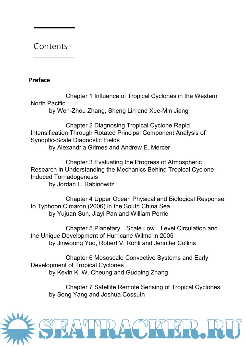 Description: Today, tropical cyclones continue to bring destruction, as well as disruption, to societies that are exposed to their threat. This book represents a compilation of recent cutting-edge research on tropical cyclones and their impacts from researchers at many institutions around the world. This book contains new looks at tropical cyclone dynamics, the use of satellite-based remote sensing in the detection and climatology of tropical cyclones, and the modeling and prediction of tropical cyclones as well as their associated impacts. This book would make a nice addition to any course on tropical meteorology highlighting topics of interest in recent research on this topic.
