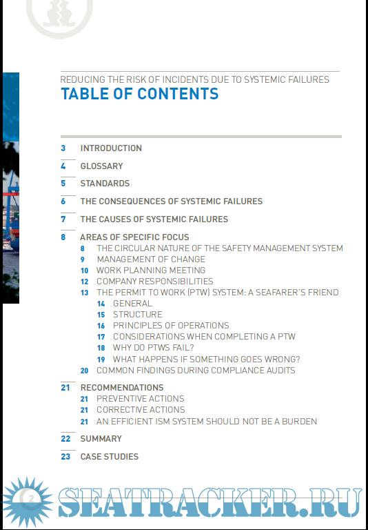 Year: 2020 Language: english Author: The London P and I Club Genre: Guide Format: PDF Quality: eBook Pages count: 24 Description: The purpose of this booklet is to provide general guidance and practical advice to ship officers, owners and managers on Safety Management Systems, the risks associated with systemic failures and the precautions that need to be taken to mitigate these risks. It covers: The definition of a systemic failure How a systemic failure can affect the ship, and How to prevent systemic failures from occurring.