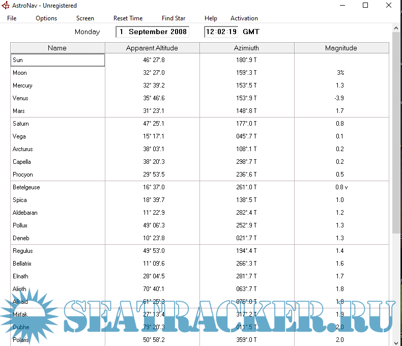 Description: AstroNav is an electronic Nautical Almanac that includes a comprehensive catalogue of stars.