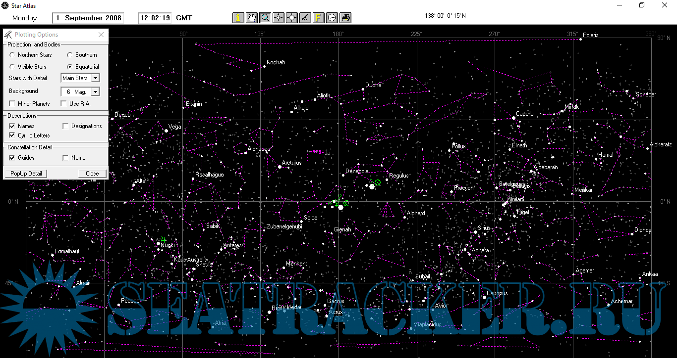 The level of detail can be quickly and easily changed. It is a tool that can be used as a simple sight calculator or as a definative astronomical reference.