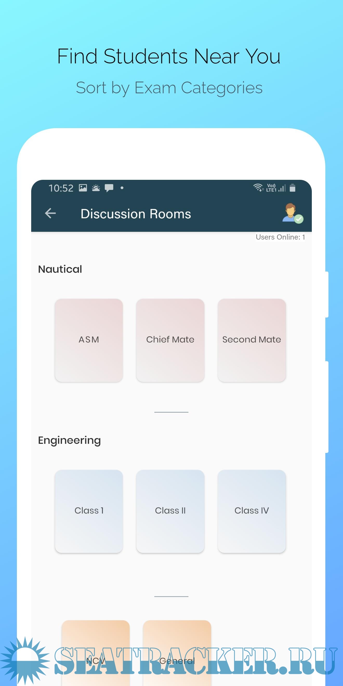 This application also features discussion groups, which is a live chat feature and can accommodate unlimited users. Another remarkable module in app allows students search their Study Buddy!. Be it Engineering or Nautical side, with simple profile data, you can contact your fellow mates/engineers appearing for examination near you. Mark your location on the map and find others appearing for the same examination!