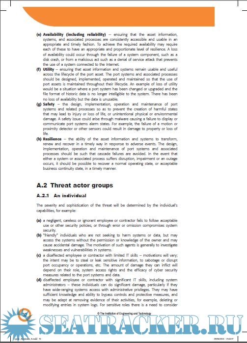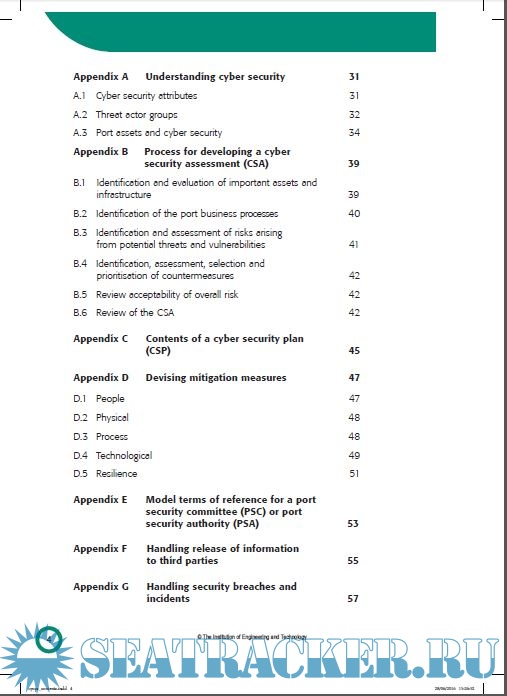Year: 2016 Language: english Author: Hugh Boyes, Roy Isbell and Alexandra Luck Genre: Guide Publisher: Institution of Engineering and Technology, London, United Kingdom Format: PDF Quality: eBook Pages count: 62 Description: Port facilities are becoming increasingly complex and dependent on the extensive use of information and communications technologies at all stages of their lifecycles. Some of this technology is embedded in the fixed and mobile assets used to operate the port; other elements may be remotely located such as the systems used to schedule vessel and cargo movements. This Code of Practice explains why it is essential that cyber security be considered as part of a holistic approach throughout an asset's lifecycle, as well as setting out the potential financial, reputational and safety consequences that may arise if threats are ignored. It is intended that this Code of Practice be used as an integral part of an organisation's overall risk management system and subsequent business planning, so as to ensure that the cyber security of port systems is managed cost effectively as part of mainstream business.