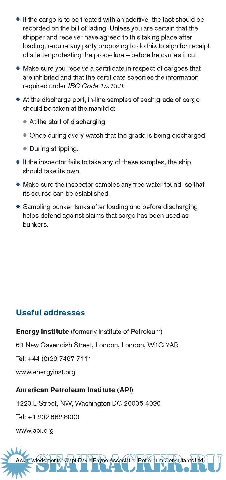 Description: The publication dedicated to the prevention of the claims associated with the contamination of the tanker cargo. The booklet starts with the information about the recognition of the main contamination causes both shoreside and shipboard.
