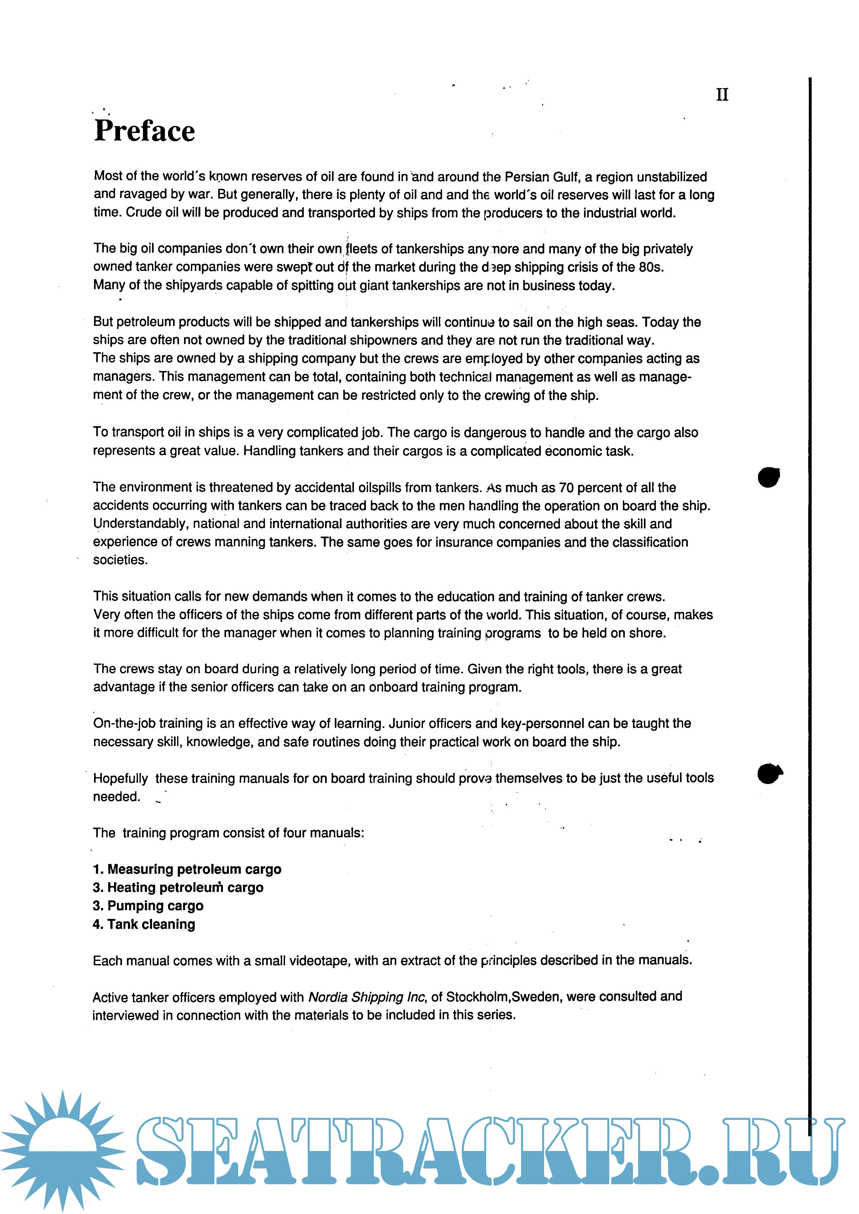Description: This ultimate goal of the authors of the present training manual was to provide the readers with the knowledge about how they should measure and calculate petroleum cargoes, how they should use the tools and instruments used on board their ships, and how they should understand and value the results obtained from instruments used on board. Finally, we would likt to suggest some good and practical routines to be used on board your ship when measuring cargo.