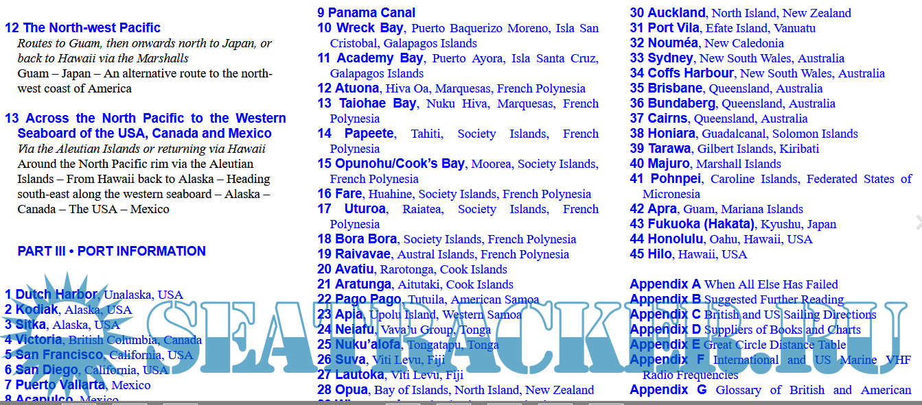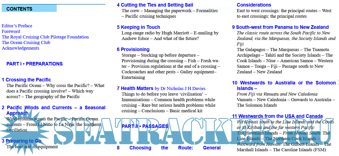 This new edition has built on substantial foundations laid down by Michael Pocock; it has expanded coverage of the options for routes across and around the ocean, given a more detailed treatment of Pacific weather and a full analysis of the communications available to ocean voyagers. Port information has been updated and new ports added. We have also introduced full colour throughout the book which we hope will make it more attractive to use.