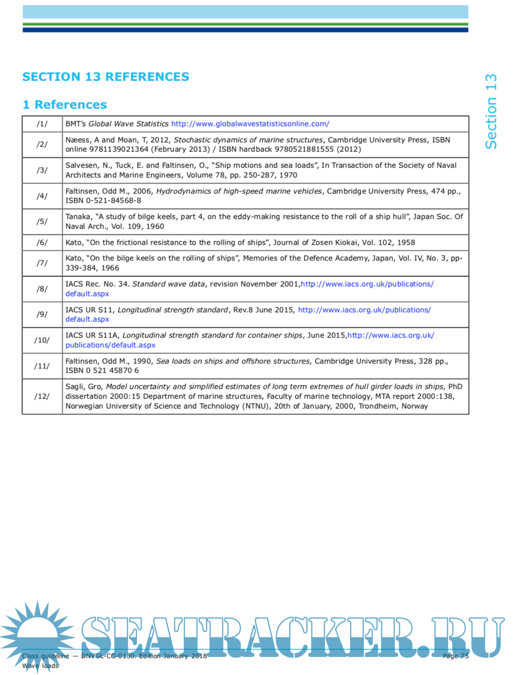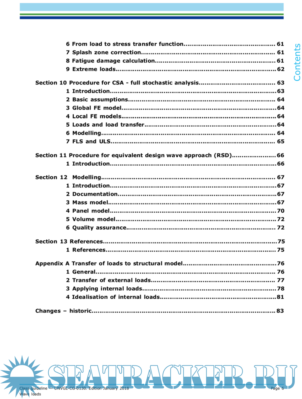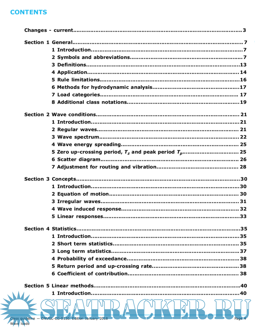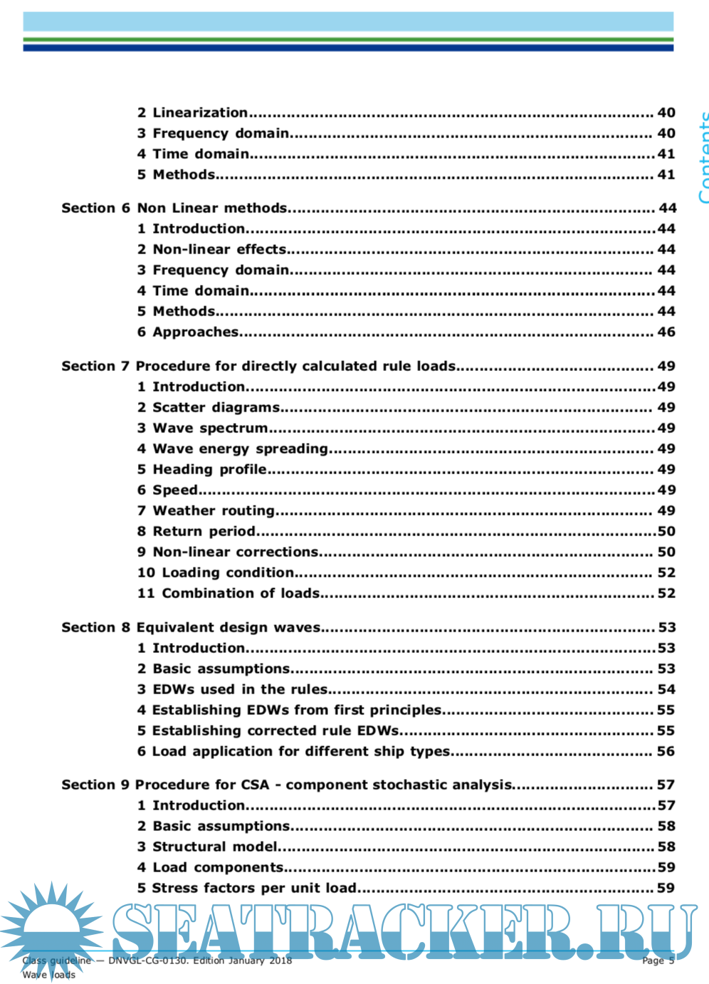 This class guidelines covers the procedures for calculation of wave induced loads, ship motions and accelerations of monohull displacement ships. Sec.7 to Sec.11 describe the approaches to calculate loads according to the rules for classification. Sec.1 to Sec.6 contain more detailed descriptions of wave conditions, statistics, concepts and approaches, which may be referred to in Sec.7 to Sec.11.