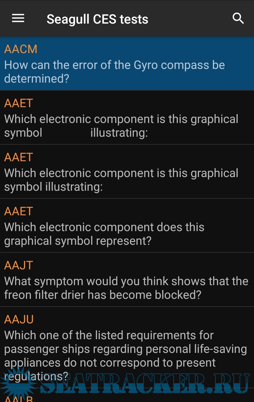 Приложение для телефона с ОС Андроид с ответами на новые морские тесты Seagull: CBT (Computer Based Training) и CES 5 (Crew Evaluation System). Будет полезна всем морякам. Удобный интерфейс и поиск по тексту.