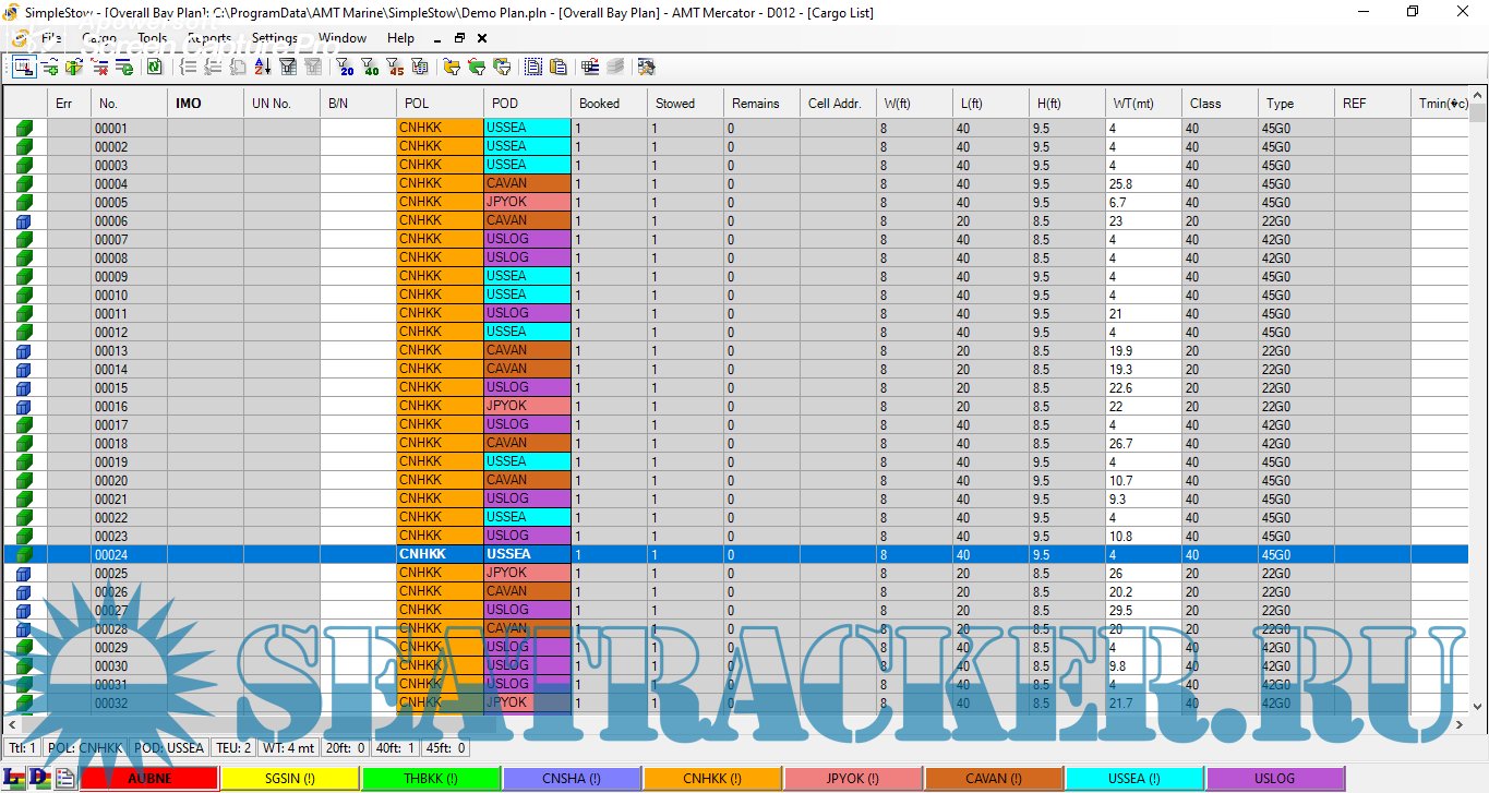 Ship planning starts from analysis of Cargo or Booking List. SimpleStow provides well-developed set of functions to sort, filter, group, search and process container data.