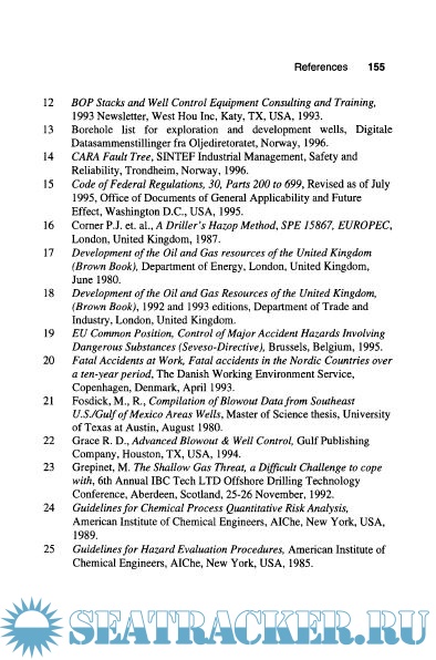 Year: 1997 Language: english Author: Per Holand Publisher: Gulf Publishing Compnay ISBN: 0-88415-514-5 Format: PDF Quality: OCR with errors Pages count: 177 Description: The book is based on the SINTEF Offshore Blowout Database which contains valuable information to be used for analyzing risk related to offshore installations. The database focuses on blowout causes and parameters important when developing risk analyses, particularly flow path, release points, flow mediums, ignition time, duration, and fatalities. Data from 380 blowouts are included.