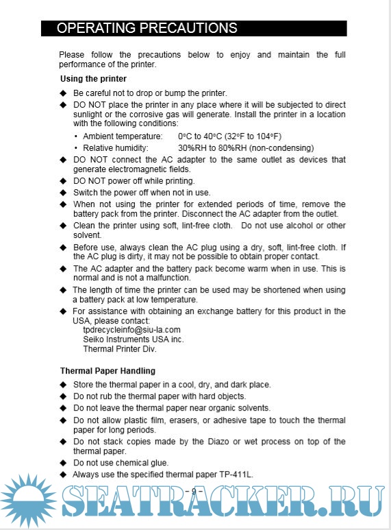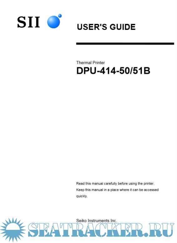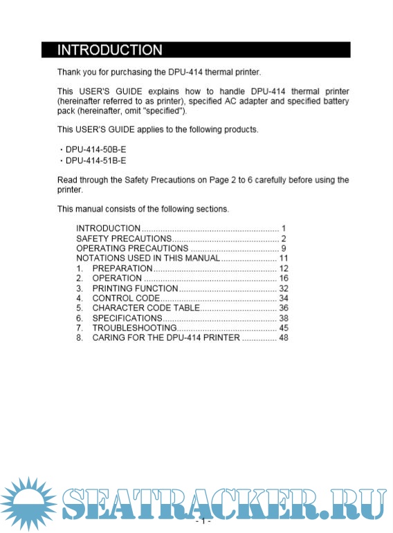 Description: This USER'S GUIDE explains how to handle DPU-414 thermal printer (hereinafter referred to as printer), specified AC adapter and specified battery pack (hereinafter, omit "specified").