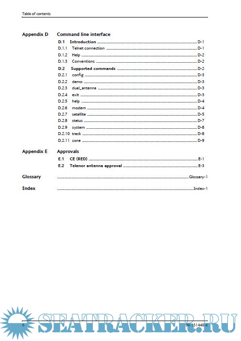 Year: 2018 Language: english Author: Thrane and Thrane Genre: Manual Publisher: Thrane and Thrane Edition: March Format: PDF Quality: eBook Pages count: 251 Description: This is an installation and service manual for the SAILOR 600 VSAT Ka system, intended for installers of the system and service personnel. Personnel installing or servicing the system must be properly trained and authorized by Cobham SATCOM. It is important that you observe all safety requirements listed in the beginning of this manual, and install the system according to the guidelines in this manual.
