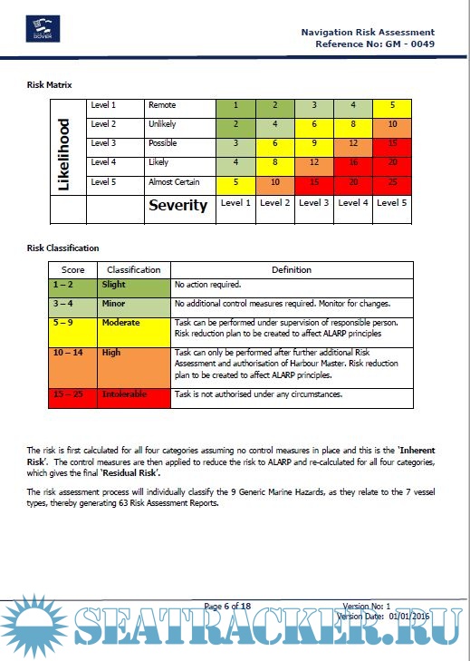 Description: The Port of Dover Navigational Risk Assessment document has been compiled to formally identify all the marine hazards both commercial and leisure within the jurisdiction of the Port. Further to this in order to support the Safety Management System (Port Marine Safety Code), a full assessment of the hazards has been carried out against a standard of acceptability. Where appropriate, risk reducing control measures have been put in place to eliminate or reduce the risk to as low as reasonably practicable (ALARP). In order to fully examine the hazards and risks, external stakeholders with specific skills and knowledge have been included in the process.