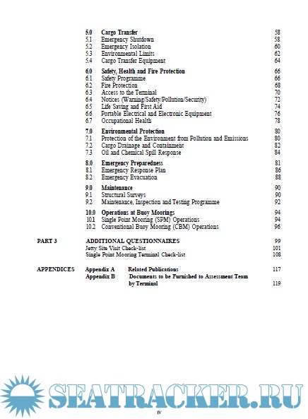 Year: 2004 Language: english Author: OCIMF Publisher: Witherby & Co. Ltd. Edition: 1st ISBN: I 85609 259 3 Format: PDF Quality: OCR with errors Pages count: 122 Description: The Marine Terminal Baseline Criteria and Assessment Questionnaire has been published by the Oil Companies International Marine Forum (OCIMF) to encourage the uniform assessment of standards of safety and environmental protection at chemical, gas, and oil terminals. This publication supercedes the Marine Terminal Survey Guidelines published in 1995 by OCIMF with the assistance of the Society of International Gas Tanker and Terminal Operators (SIGTTO). The Baseline Criteria are written for the assessment of fixed piers, sea islands and buoy mooring terminals. They are not intended for use at producing facilities such as offshore platforms and deepwater loading systems, although the contents could be adapted for such purpose.
