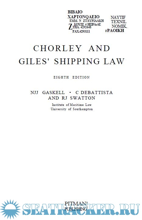 Description: Chorley and Giles' Shipping Law was originally written as a general elementary textbook with the student of commerce in mind rather than the professional legal student. Four decades later, the book is established as a standard work used by teachers in universities and polutechnics by practitioners in the City of London and other commercial centres and by students of maritime law around the world.