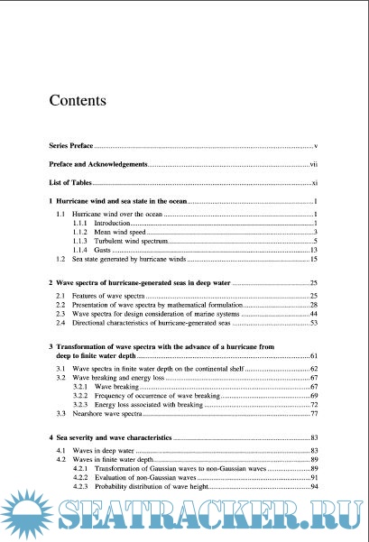Year: 2003 Language: english Author: Michel K. Ochi Genre: Textbook Publisher: Elsevier Edition: 1st ISBN: 0 08 044312 5 Format: PDF Quality: OCR without errors Pages count: 155 Description: Hurricanes (typhoons in the UK and Asia) are one of the most adverse aspects of the ocean environment which may give rise to a disastrous event for marine systems in the ocean. Furthermore, when a hurricane advances toward the shoreline it causes immense destruction on habitation and the natural environment in the vicinity of the landing site. A considerable amount of information on hurricane winds has been presented to date. Nevertheless, only limited information is currently available on hurricane-generated seas, although many studies on severe seas generated by ordinary winds have been carried out. With the prospective goal stated in the preceding, this book is designed as a reference for researchers, designers, graduate students and technical managers in naval, ocean and coastal engineering. It presents information on the severity of hurricane-generated seas in the deep ocean, in finite water depth of the continental shelf as well as nearshore at the time of hurricane landing. Most wave data of hurricane-generated seas in the deep ocean referred to in this text are measured by NOAA buoys while some data are obtained by aircraft equipped with measurement devices presented in the researcher's references.