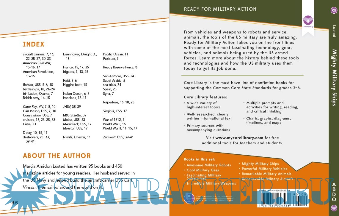 Description: Packed with exciting facts and important aspects on military ships, this title also provides historical context, compelling photos, primary source quotations, and critical thinking activities. The title also includes a glossary, web links, and additional resources. Core Library is an imprint of Abdo Publishing Company.