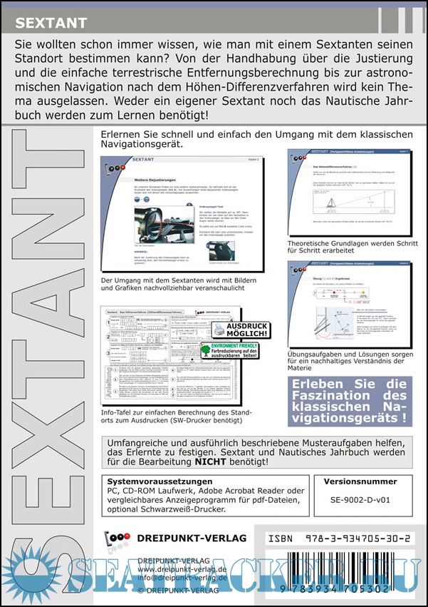 Description: Der Sextant ist das klassische Navigationsgerät, das auch in den Zeiten von GPS nicht an Aktualität eingebüßt hat. Mit Hilfe dieses Programms werden Sie in kleinen und nachvollziehbaren Schritten an die Sextantbenutzung herangeführt.