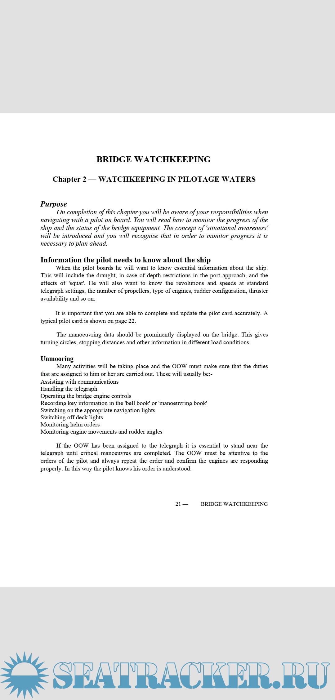 Description: Welcome to this study guide on Bridge Watchkeeping. It has been prepared in response to a