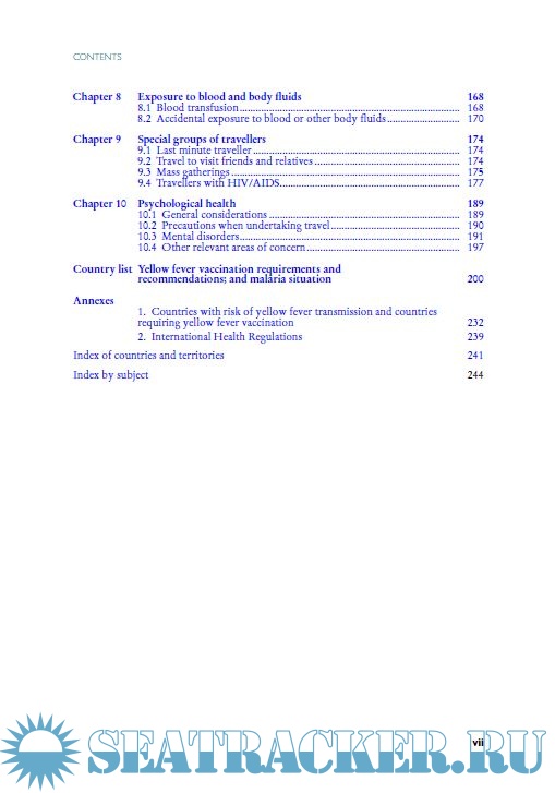 This book is intended for the medical and public health professionals who advise travellers, but it is also a standard reference for travel agents, airlines and shipping companies – and for travellers themselves.