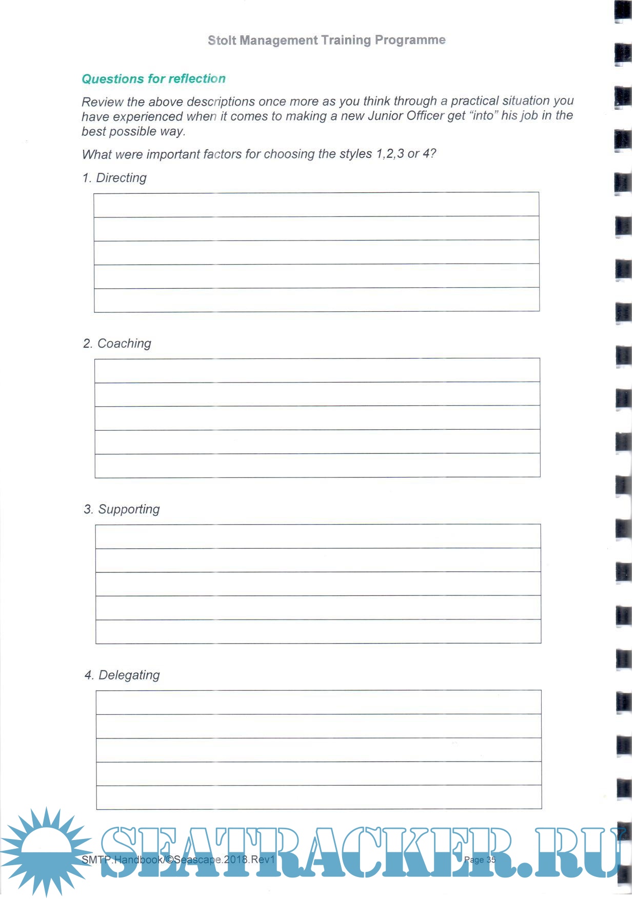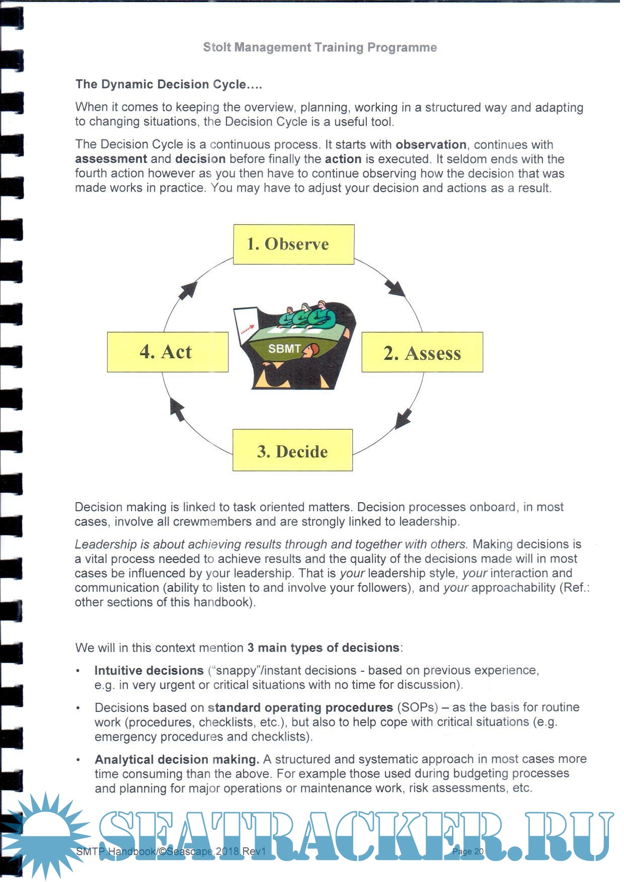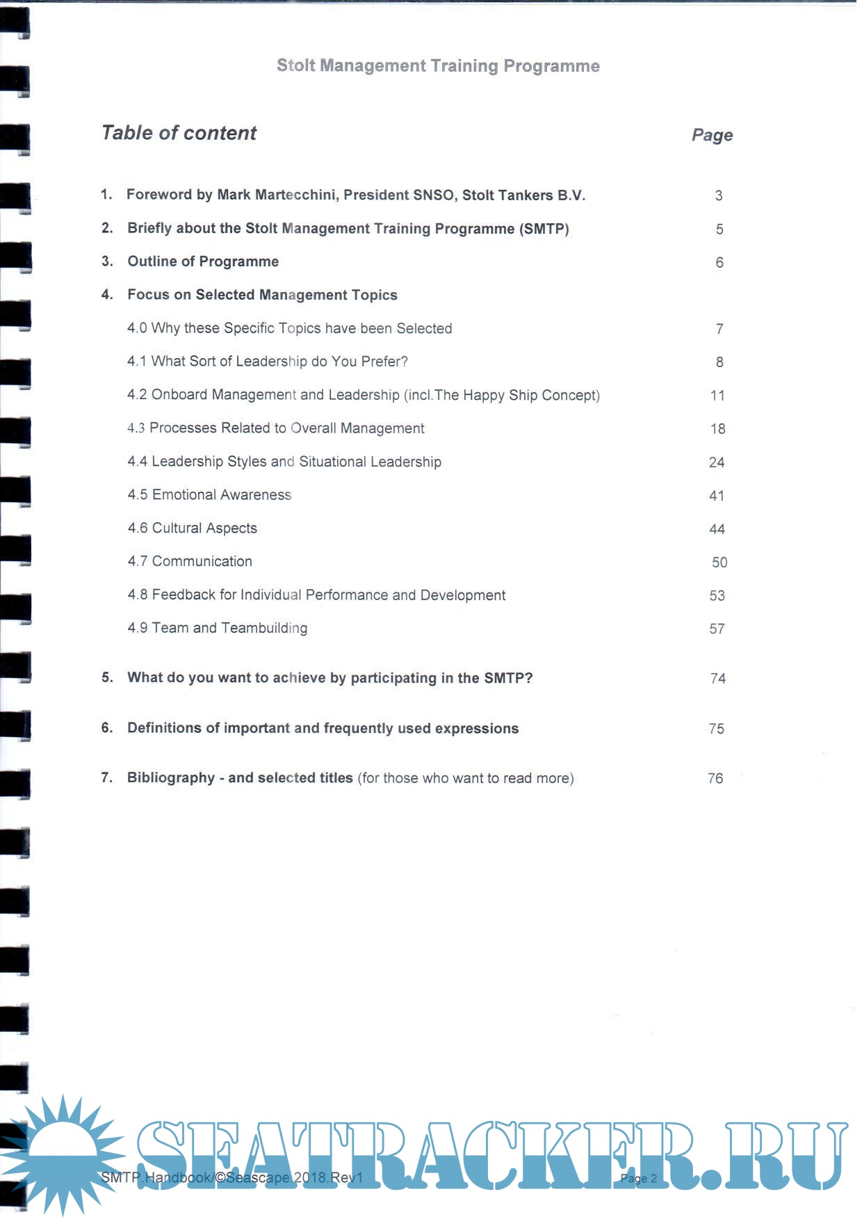 Year: 2018 Language: english Author: Seascape Genre: Handbook Format: PDF Quality: Scanned pages Pages count: 78 Description: The programme is tailored specifically for Stolt Tankers. As the industry leader in operating Chemical Tankers - among the most complex and challenging of merchant vessels - the company is commited to providing you with the right tools to meet those challenges. The support and development of the ships' Officers is paramount in ensuring operational excellence. The purpose of this handbook is to: 1. Give you an initial insight into the theories and practices within Stolt Management Training Programme (SMTP). 2. Introduce you to the basic management theories to provide support for your individual pre-reading and studies during and after SMTP. 3. Present you with some preparatory questions and exercises that can help you start reflecting, and raising awareness, on what you will need focus on in order to reinforce your own abilities as a manager and leader.