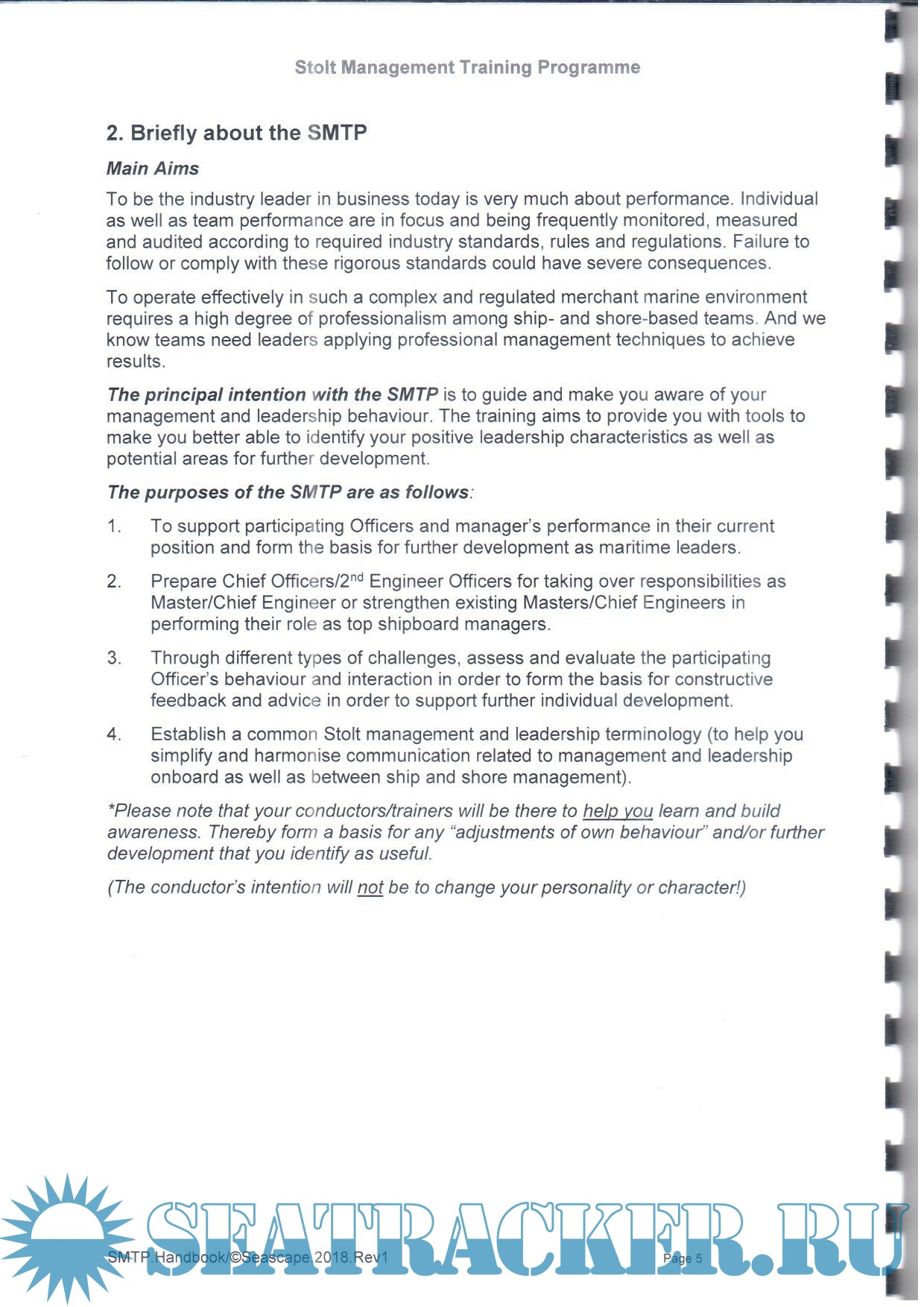 1. Give you an initial insight into the theories and practices within Stolt Management Training Programme (SMTP).