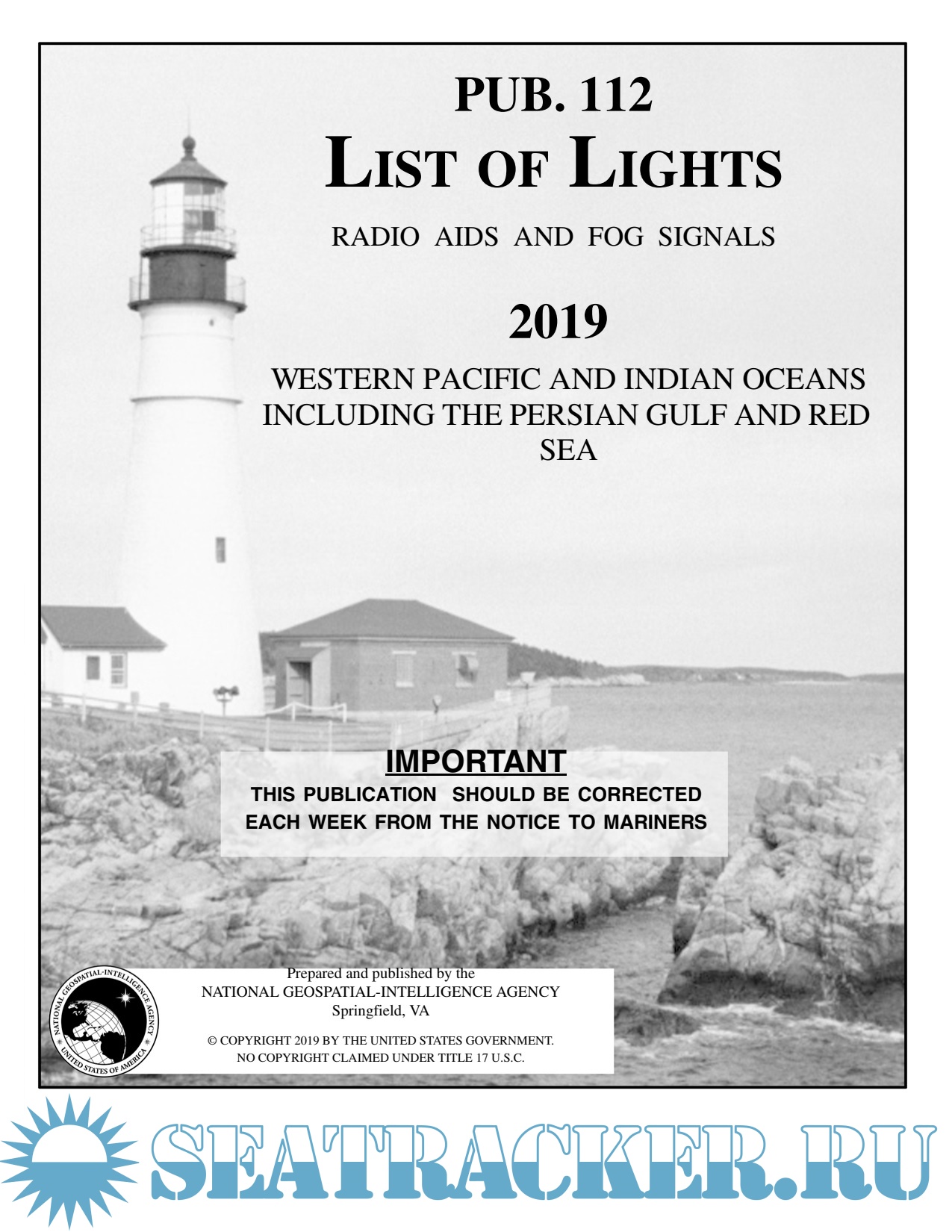 Description: The 2019 edition of Pub.112, List of Lights, Radio Aids and Fog Signals for the Western Pacific and Indian Oceans including the Persian Gulf and Red Sea, cancels the previous edition of Pub.112.