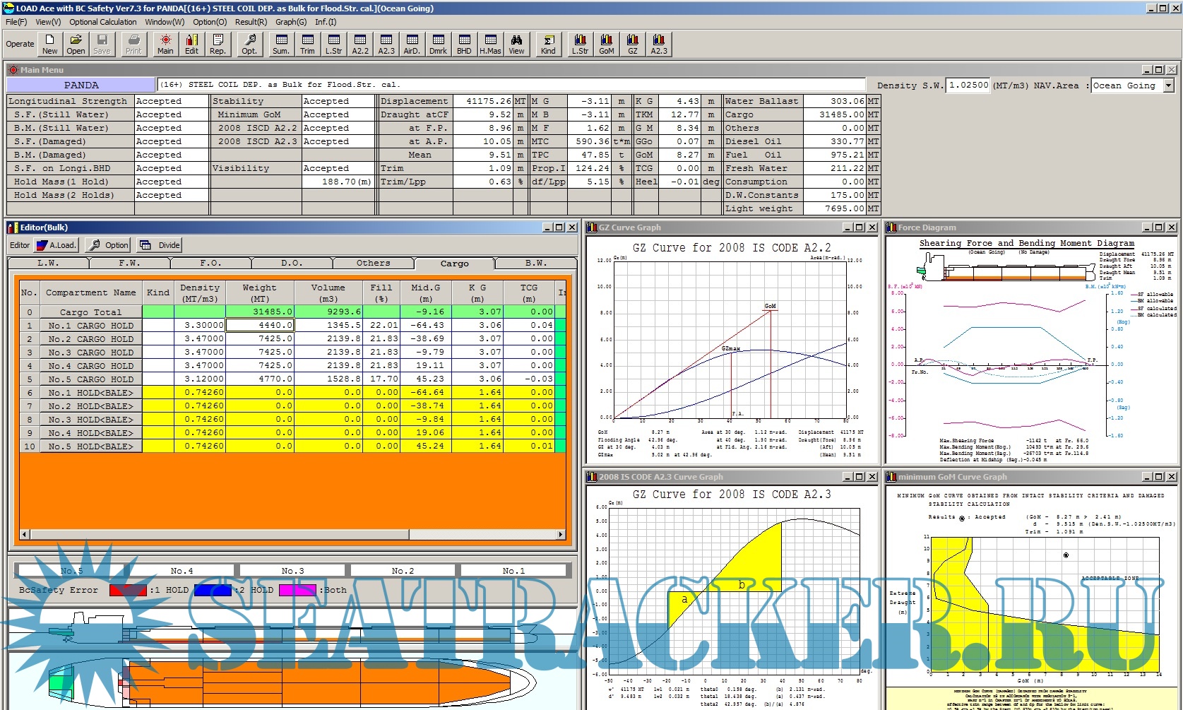 Year: 201x-2020 Version: Various Developer: Various Platform: Windows 64-bit OS compatibility: unknown Localization: english Crack: Not needed Description: Collection of shipboard stability and load management software. A Standard application with accurately perform intact and damage stability calculations for all user defined loading conditions. Create & store new conditions, Retrieve and edit stored conditions, Data input, tank filling by weight, volume, and percentage, Deck Cargo’s weight and CG. Draft & Intact Stability. Ship specific criterion as per approved booklet. Shear Force & Bending Moment results. Warnings, Checks & Error Prevention. and final Reports Generation. ** Download for self-study, training and if you really need it!! ** Repetitions Possible or/and maybe Already exist on the Tracker!!