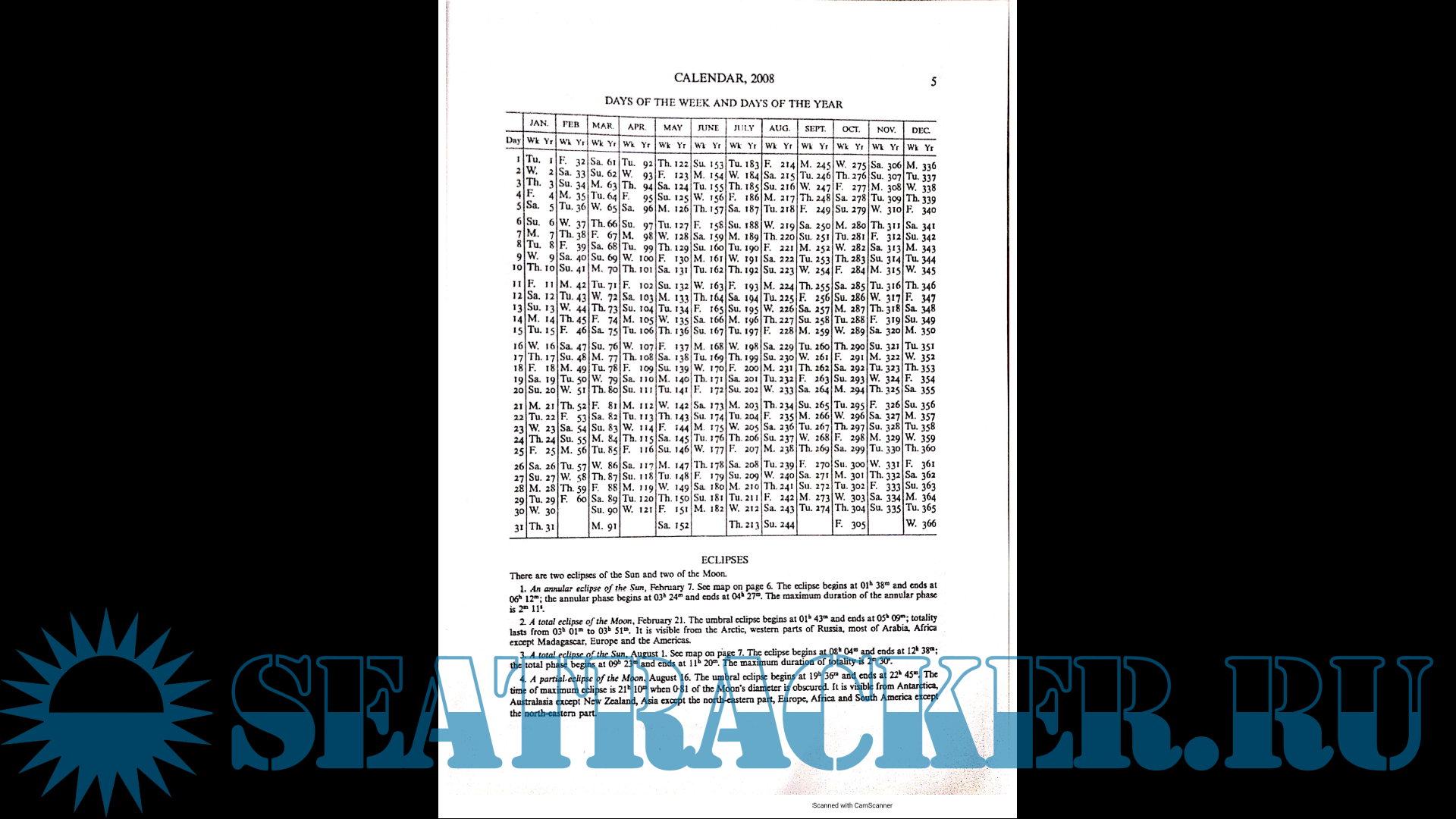 Selected pages from The Nautical Almanac 2008