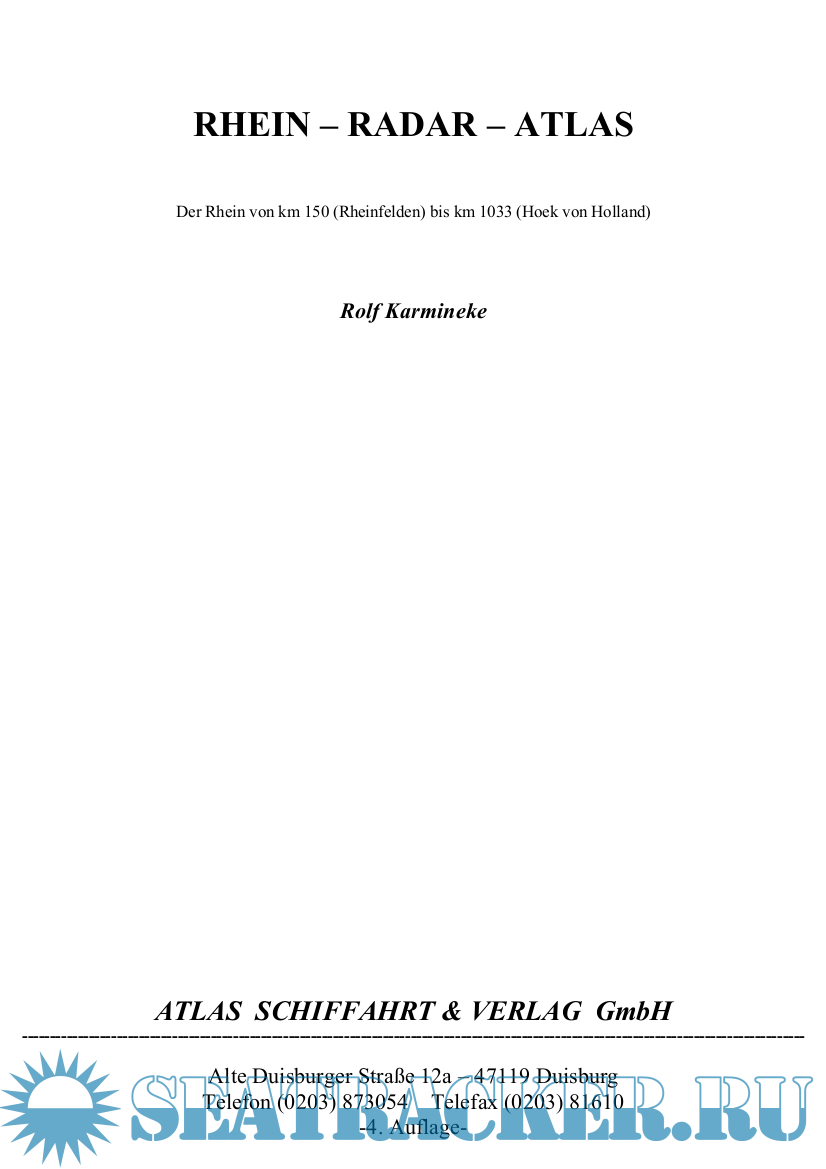 Description: Der „RHEIN-RADAR-ATLAS“ soll als überarbeitetes Werk dem Praktiker ein verständliches Bild zum Befahren des Rheins mit allen Häfen geben. Für den Nachwuchs kann dieser Atlas alle Informationen vermitteln, die für Streckenkenntnisse erforderlich sind.
