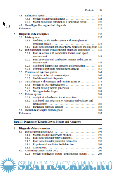 Description: This book offers first a short introduction to advanced supervision, fault detection and diagnosis methods. It then describes model-based methods of fault detection and diagnosis for the main components of gasoline and diesel engines, such as the intake system, fuel supply, fuel injection, combustion process, turbocharger, exhaust system and exhaust gas aftertreatment. Additionally, model-based fault diagnosis of electrical motors, electric, pneumatic and hydraulic actuators and fault-tolerant systems is treated. In general series production sensors are used. It includes abundant experimental results showing the detection and diagnosis quality of implemented faults.