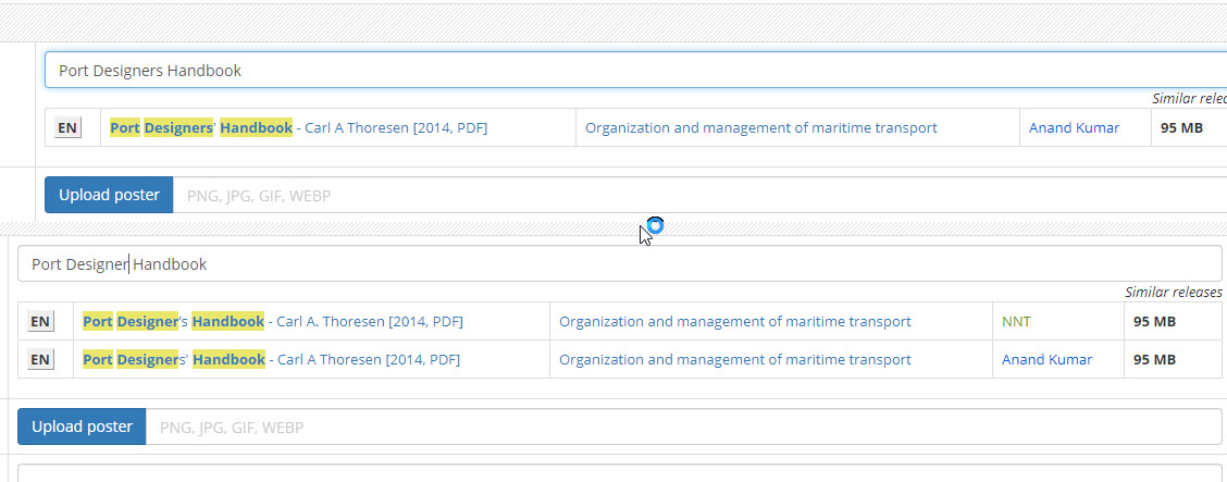 Anand Kumar, Best place to search is when creating a release. Similar titles will show up automatically. dont use search in the home page section for releases.