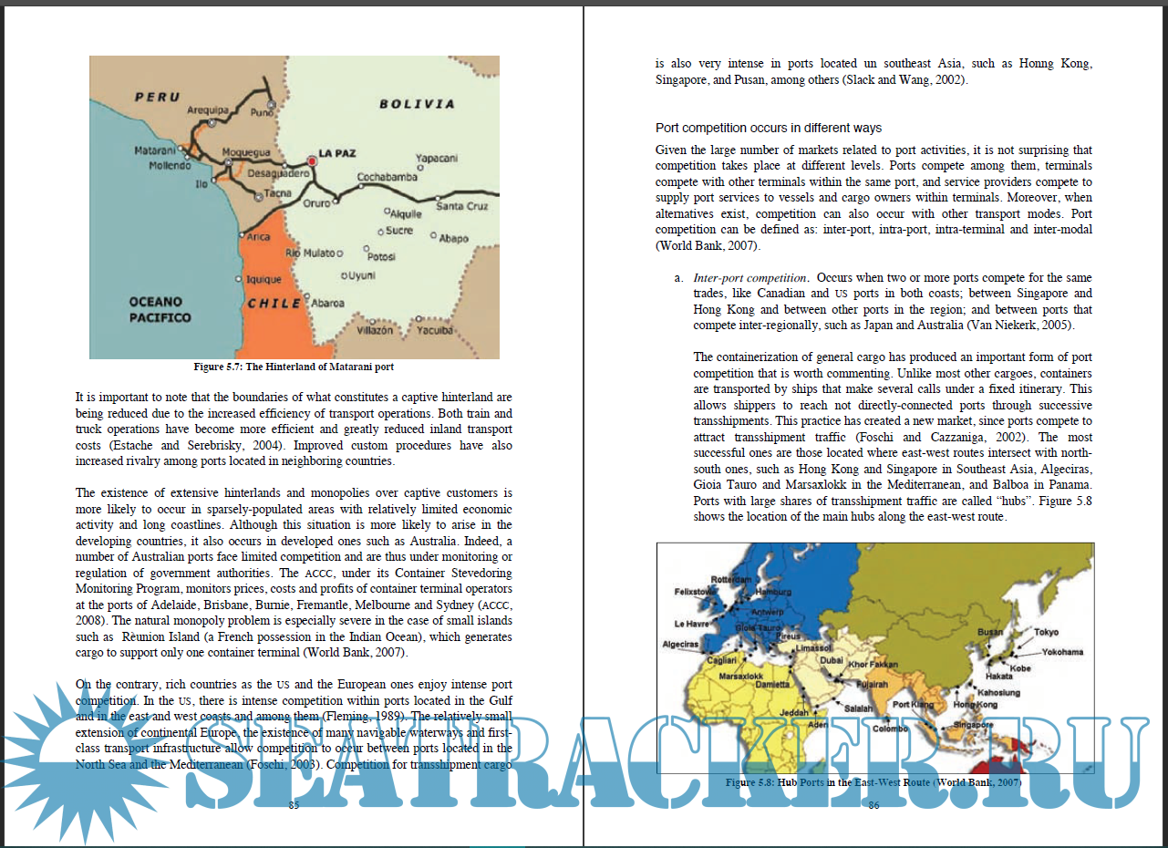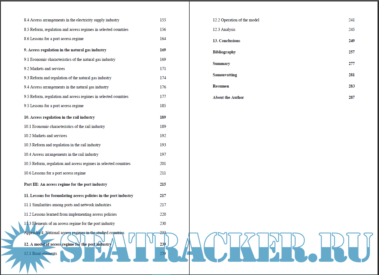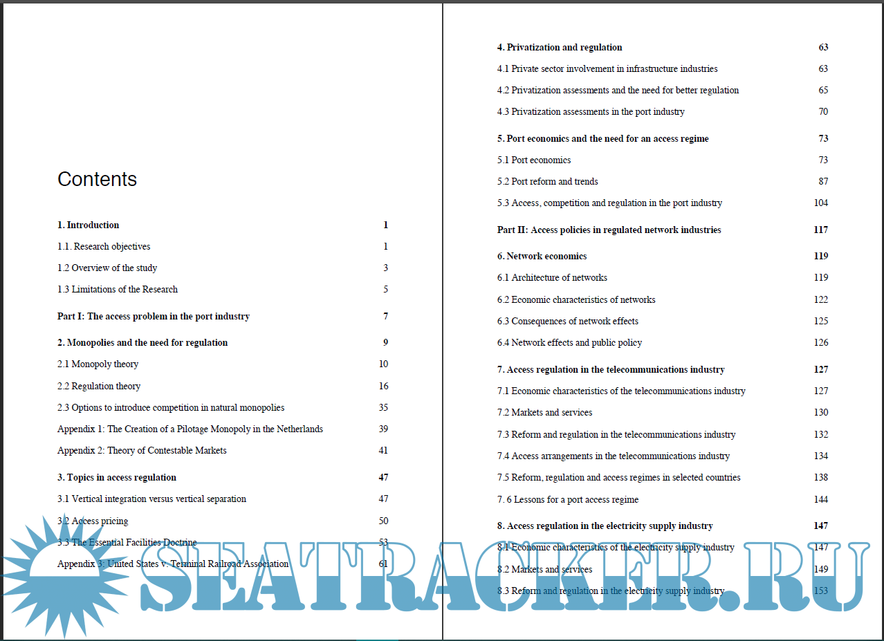 Year: 2010 Language: english Author: Enzo Defilippi Genre: Research papers Format: PDF Quality: eBook Pages count: 321 Description: The problem of access arises in industries where inputs from monopolistic and competitive markets are complementarily needed to provide a service. In these circumstances, the firm controlling the monopolistic segment has incentives to deter competition in the competitive segments (markets) to recover profits foregone by regulation (Paredes, 1997). In the port industry, for example, a number of services need to be jointly provided to complete the logistics chain: pilotage, towage, stevedoring, storage, etc. Without any of these, cargo cannot be delivered. In ports where a terminal constitutes a natural monopoly, an integrated terminal operator has incentives to deter competition in the markets of services that are necessary to complete the logistics chain, since this would allow him to charge disproportionate prices and extract monopolistic rents. This strategy can be implemented by preferential treatment to itself or sister companies, or by restricting competitors access to the terminal. To avoid such situations from occurring, regulators have two options. They can either (i) forbid integration between terminal operators and carriers or, (ii) establish a framework under which all service providers are allowed to access and use the terminal under reasonable conditions. As suggested by Vickers (1995), the first option (vertical separation) may create non-trivial transaction costs that result in higher prices for the consumers, for which the second option (the implementation of access policies) constitutes a more desirable policy. However, formulating access policies is not an easy task. If access conditions are too high, a limited number of entrants will use the terminal, allowing providers to obtain economic rents. If conditions are too relaxed, an excess of entry may occur, thus reducing the terminal operator’s incentives to adequately maintain and expand the infrastructure (Laffont and Tirole 1994). The objective of this thesis is to analyze the characteristics of access policies implemented in the telecommunications, electricity supply, natural gas and railways industries, and to use the lessons learned from these experiences to propose a model suitable for the port industry.