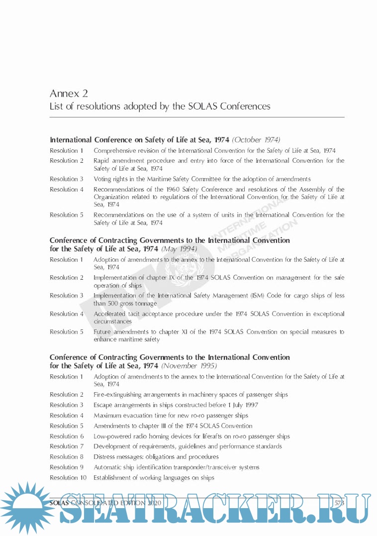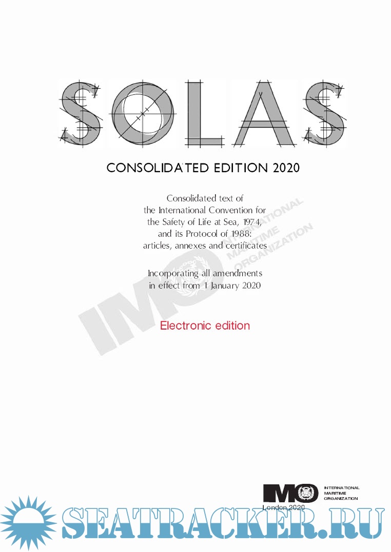 Year: 2020 Language: english Author: IMO Genre: Textbook Publisher: IMO Format: PDF Quality: Scan+OCR Pages count: 576 Description: The Convention is also one of the oldest of its kind: the first version was adopted in 1914 following the sinking of the Titanic with the loss of more than 1,500 lives. Since then there have been four more versions of SOLAS. The present version was adopted in 1974 and entered into force in 1980. In order to provide an easy reference to all SOLAS requirements applicable from 1 January 2020, this edition presents a consolidated text of the Convention, its Protocols of 1978 and 1988 and all amendments in effect from that date. Additionally, this edition includes Unified Interpretations to SOLAS regulations, which were adopted by the Maritime Safety Committee.