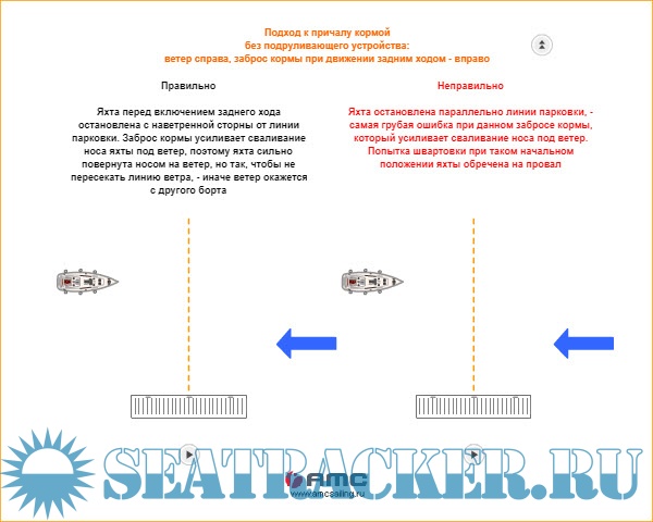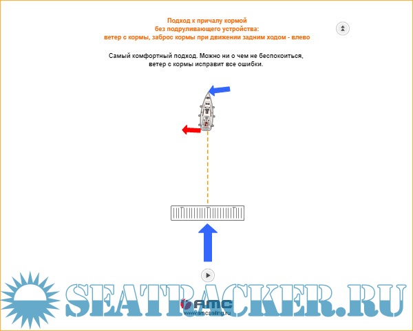 Данное учебное пособие позволяет проанализировать влияние ветра и заброса кормы при швартовке однокорпусной парусной яхты кормой к причалу по прямой из положения полной остановки перед включением реверса. Именно этот маневр вызывает наибольшие трудности у начинающих шкиперов.