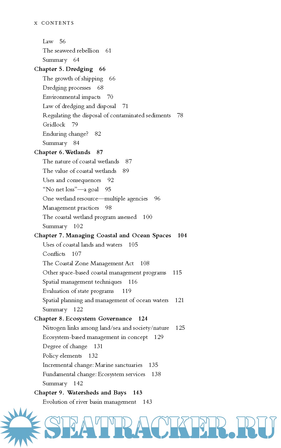 The book considers the ability of sector-based management, spatial management, and ecosystem-based management to solve critical environmental problems. Evaluating governance successes and failures, Burroughs covers topics including sewage disposal, dredging, wetlands, watersheds, and fisheries. He shows that at times sector-based management, which focuses on separate, individual uses of the coasts, has been implemented effectively. But he also illustrates examples of conflict, such as the incompatibility of waste disposal and fishing in the same waters. Burroughs assesses spatial and ecosystem-based management’s potential to address these conflicts.