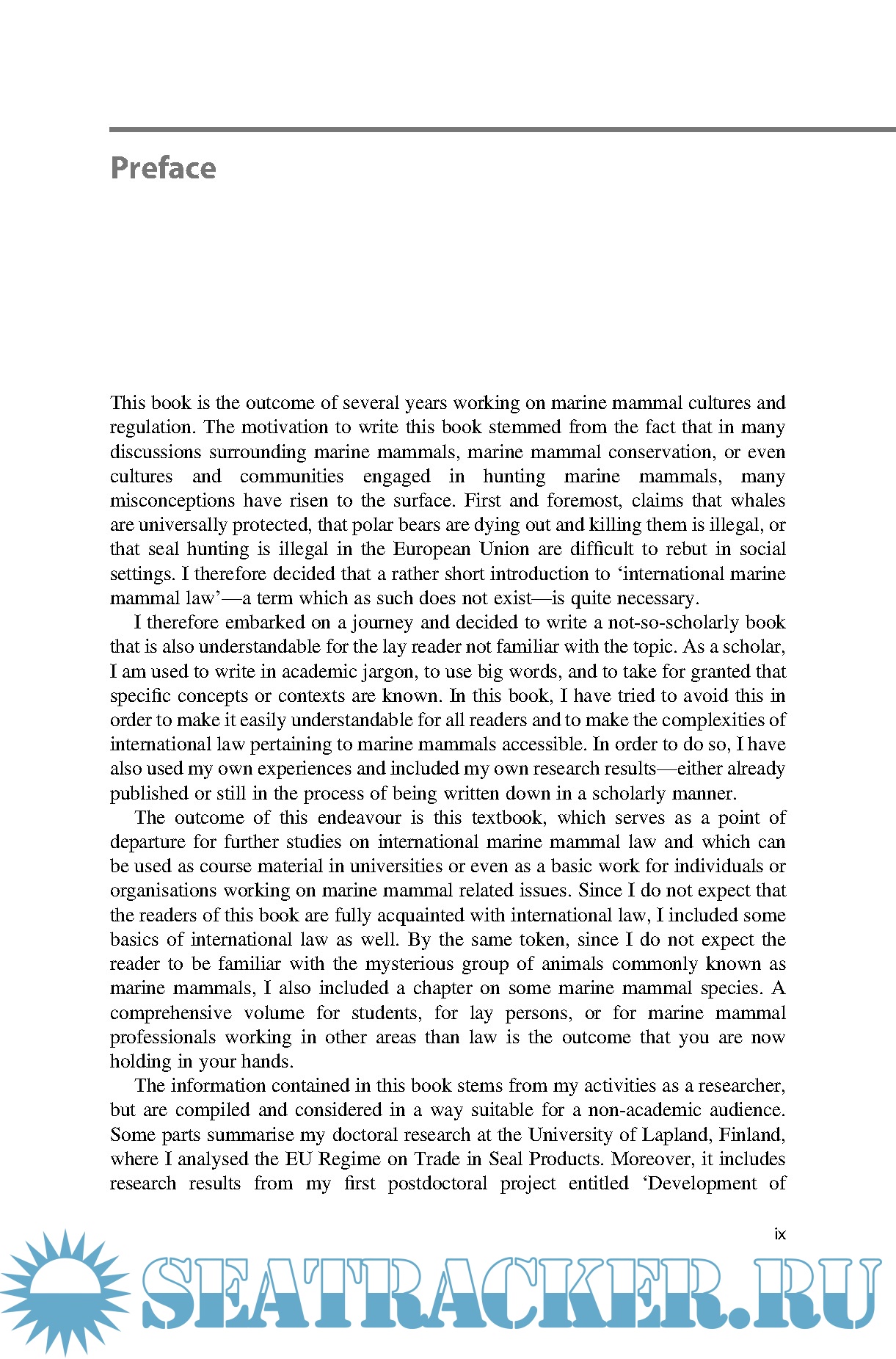 Year: 2020 Language: english Author: Nikolas Sellheim Publisher: Springer Edition: 1 ISBN: 978-3-030-35268-4 Format: PDF Quality: eBook Pages count: 245 Description: International Marine Mammal Law is a comprehensive, introductory volume on the legal regimes governing the conservation and utilisation of marine mammals. Written as a textbook, it provides basic overviews of international conservation law, which enable the reader to understand the greater implications of governance of a specific group of species. Paired with biological information on some marine mammal species, the international regimes for whales, seals and polar bears are explored — either as part of global regimes of international environmental governance or as regimes that were specifically designed for them. The book concludes with outlooks on the future of international marine mammal law, particularly in light of Japan’s withdrawal from the International Convention for the Regulation of Whaling in July 2019.