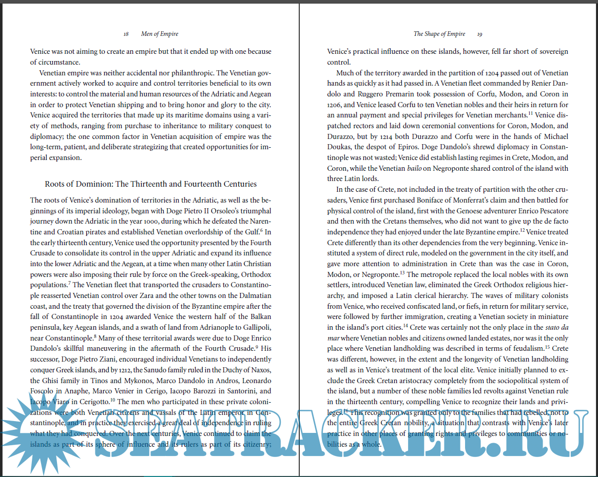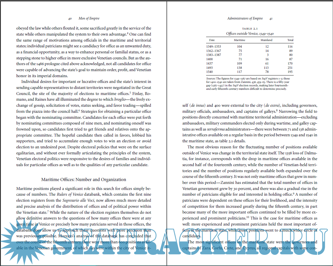 Year: 2009 Language: english Author: M O′Connell Genre: History Publisher: Johns Hopkins University Press Edition: 1 ISBN: 978-0801891458 Format: PDF Quality: eBook Pages count: 288 Description: The city-state of Venice, with a population of less than 100,000, dominated a fragmented and fragile empire at the boundary between East and West, between Latin Christian, Greek Orthodox, and Muslim worlds. In this institutional and administrative history, Monique O'Connell explains the structures, processes, practices, and laws by which Venice maintained its vast overseas holdings. The legal, linguistic, religious, and cultural diversity within Venice's empire made it difficult to impose any centralization or unity among its disparate territories. O'Connell has mined the vast archival resources to explain how Venice's central government was able to administer and govern its extensive empire. O'Connell finds that successful governance depended heavily on the experience of governors, an interlocking network of noble families, who were sent overseas to negotiate the often conflicting demands of Venice's governing council and the local populations. In this nexus of state power and personal influence, these imperial administrators played a crucial role in representing the state as a hegemonic power; creating patronage and family connections between Venetian patricians and their subjects; and using the judicial system to negotiate a balance between local and imperial interests. In explaining the institutions and individuals that permitted this type of negotiation, O'Connell offers a historical example of an early modern empire at the height of imperial expansion.
