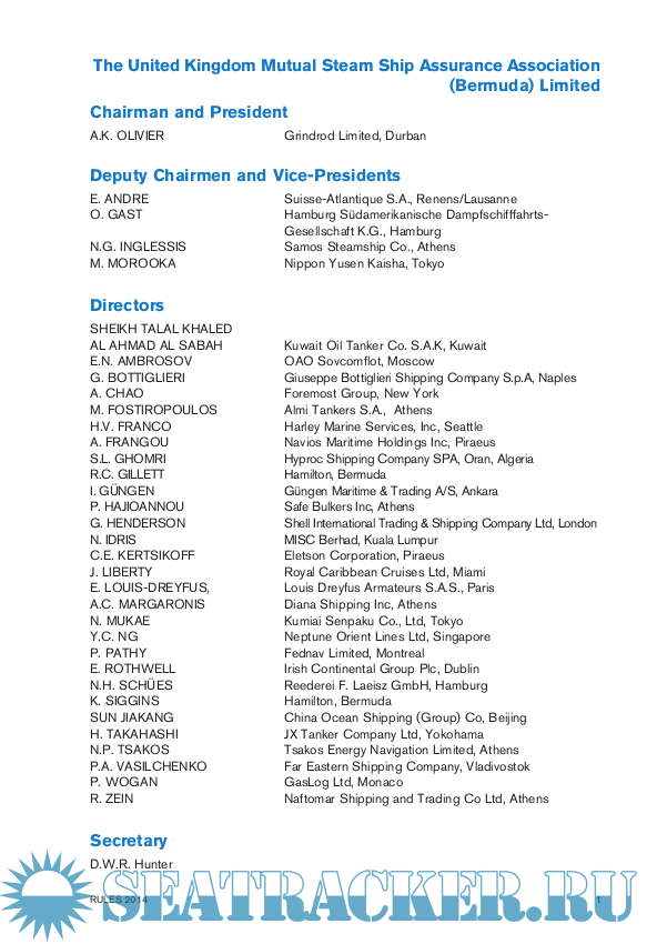 Year: 2014 Language: english Author: UK P&I Club Publisher: UK P&I Club Format: PDF Quality: eBook Pages count: 104 Description: (Effective on and from noon Greenwich Mean Time on 20th February, 2014). The UK P&I Club is a mutual protection and indemnity association, which operates through The United Kingdom Mutual Steam Ship Assurance Association (Europe) Limited and its parent company The United Kingdom Mutual Steam Ship Assurance Association (Bermuda) Limited. These Rules were adopted in accordance with the powers conferred by the articles of association of The United Kingdom Mutual Steam Ship Assurance Association (Europe) Limited. For the avoidance of doubt for the purpose of Rule 14 no contract of insurance or reinsurance with The United Kingdom Mutual Steam Ship Assurance Association (Europe) Limited shall entitle any person to be or become a member of The United Kingdom Mutual Steam Ship Assurance Association (Europe) Limited. The notes to the Rules are for guidance only and do not form part of the Rules.