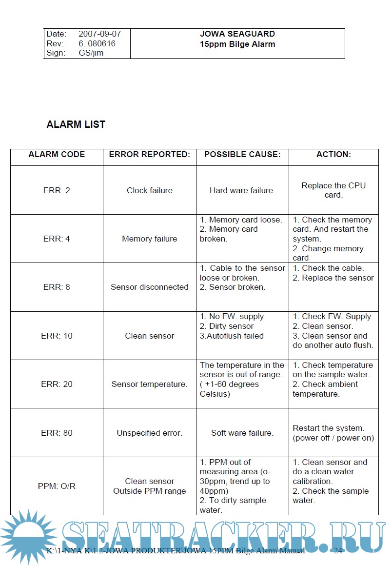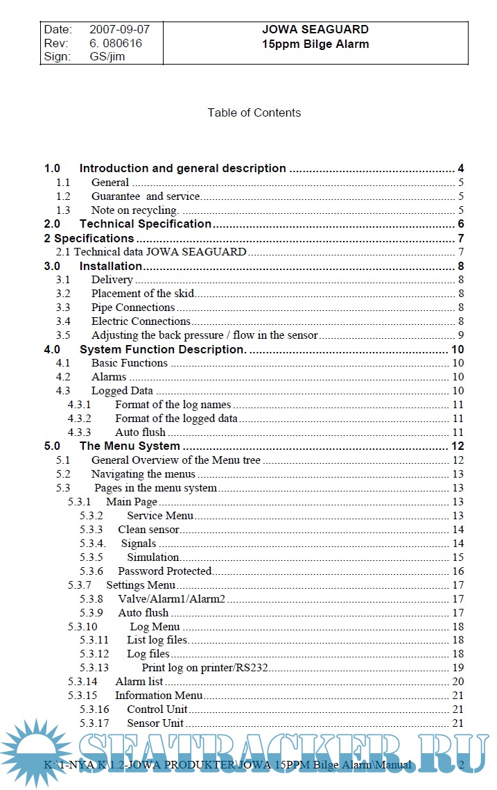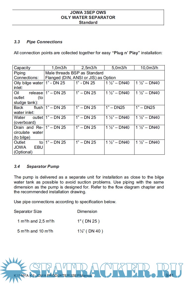 Description: Bilge Water Separator Operating Instruction and Technical Manual "JOWA 3SEP OWS"