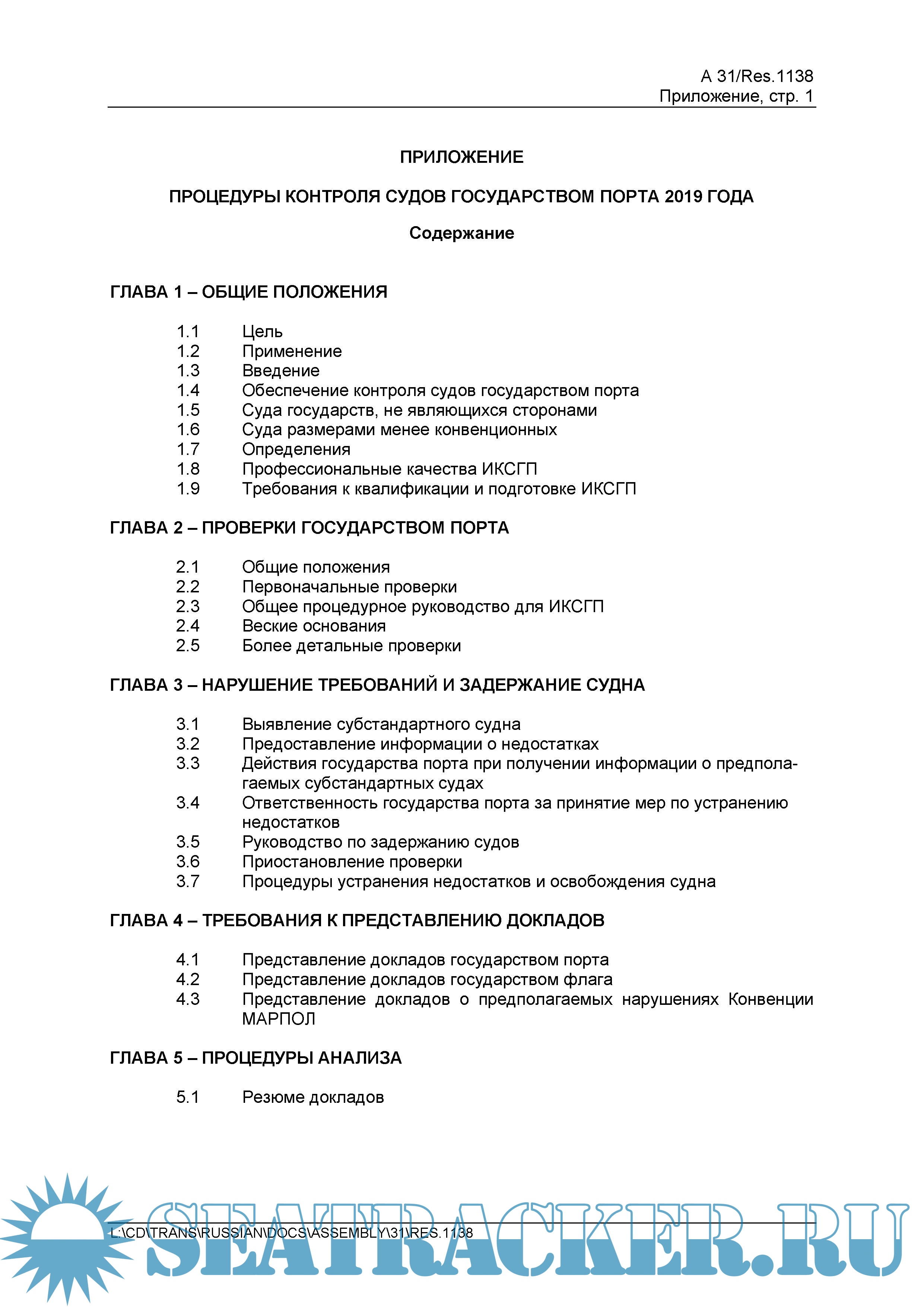 Процедуры контроля судов государством порта 2019 года. Резолюция A.1138(31)