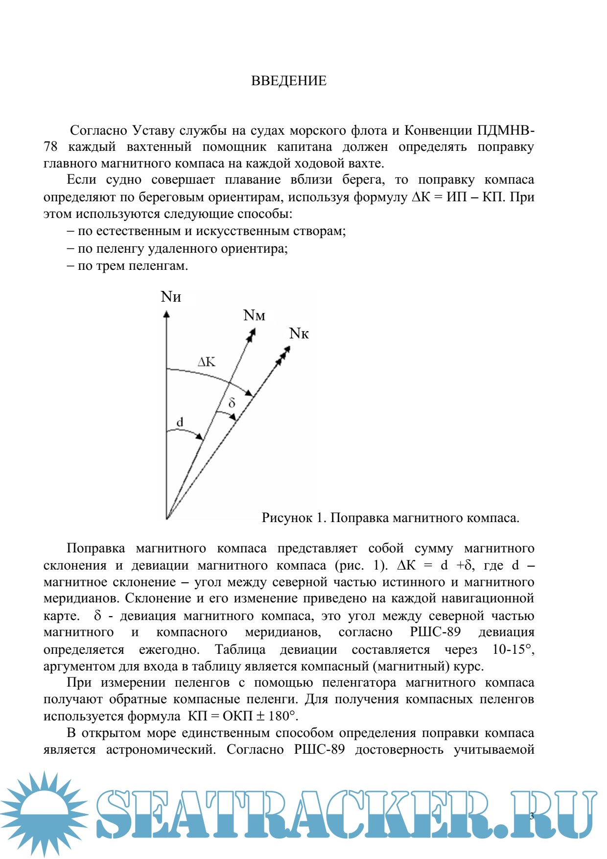 2402. Целью лабораторных работ по теме "Определение поправок компаса" является отработка практических навыков при расчете поправки компаса различными способами.